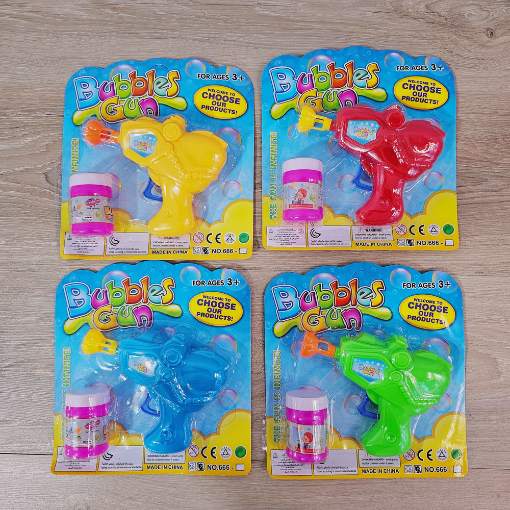 (Pistola lanza burbujas, incluye un liquido de burbujas, disponible en 4 colores. Ideal para los mas chicos).