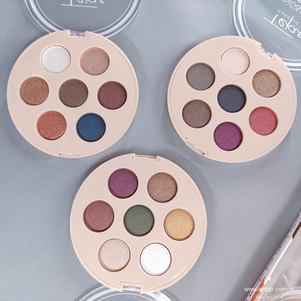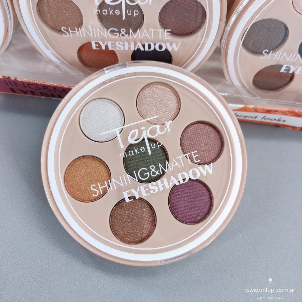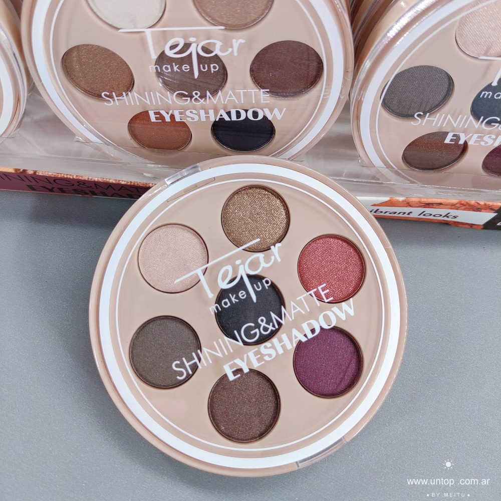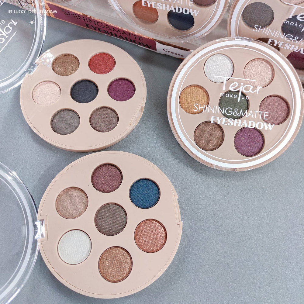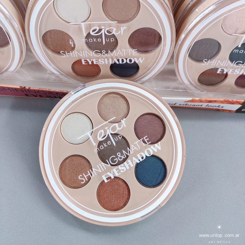 (Sombra para ojos por unidad, marca "Tejar". Cada paleta trae 7 colores distintos, en acabado brilloso.)