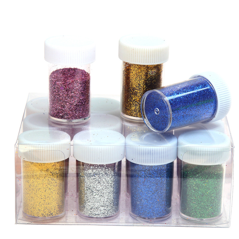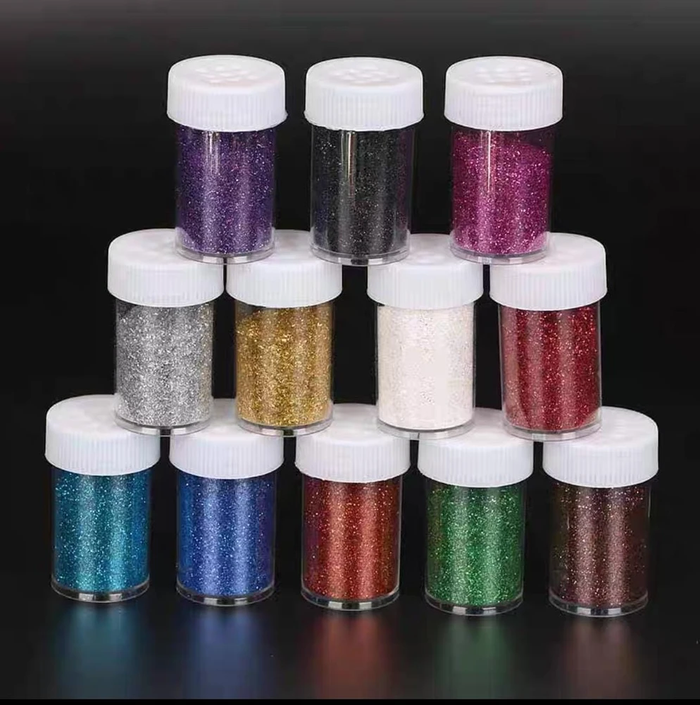 (Glitter en polvo color multicolor, fácil de usar se adhiere al cabello, uña y piel. Ideal para fiestas y eventos o también puedes usarlo en manualidades. 12 Variedad de colores).