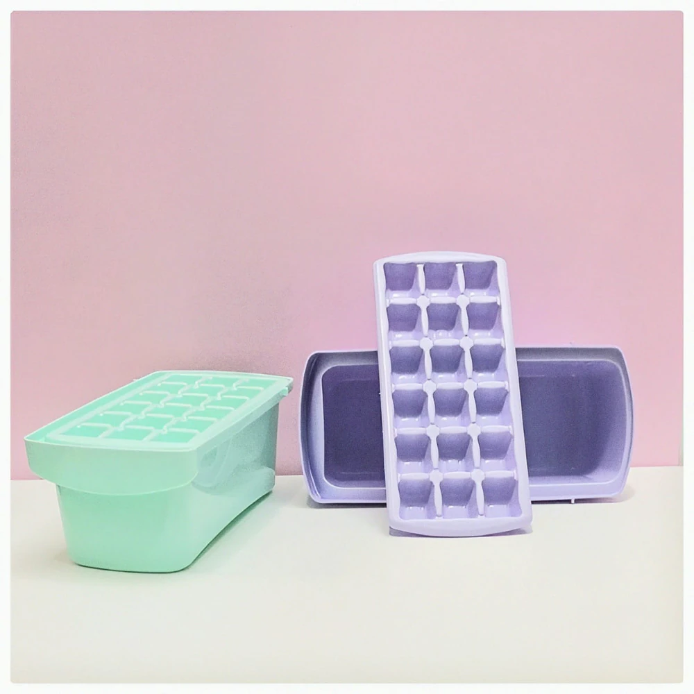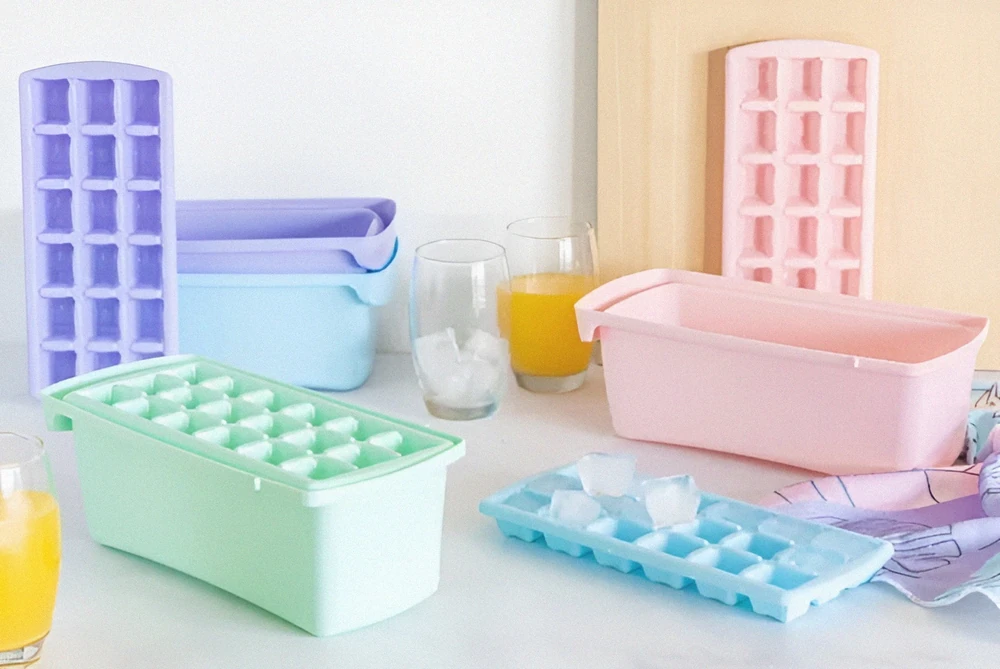 (Cubetera pasteles con Contenedor para ir guardando los cubitos de hielo que se van haciendo y seguir haciendo más. 4 Clores pasteles a elección).