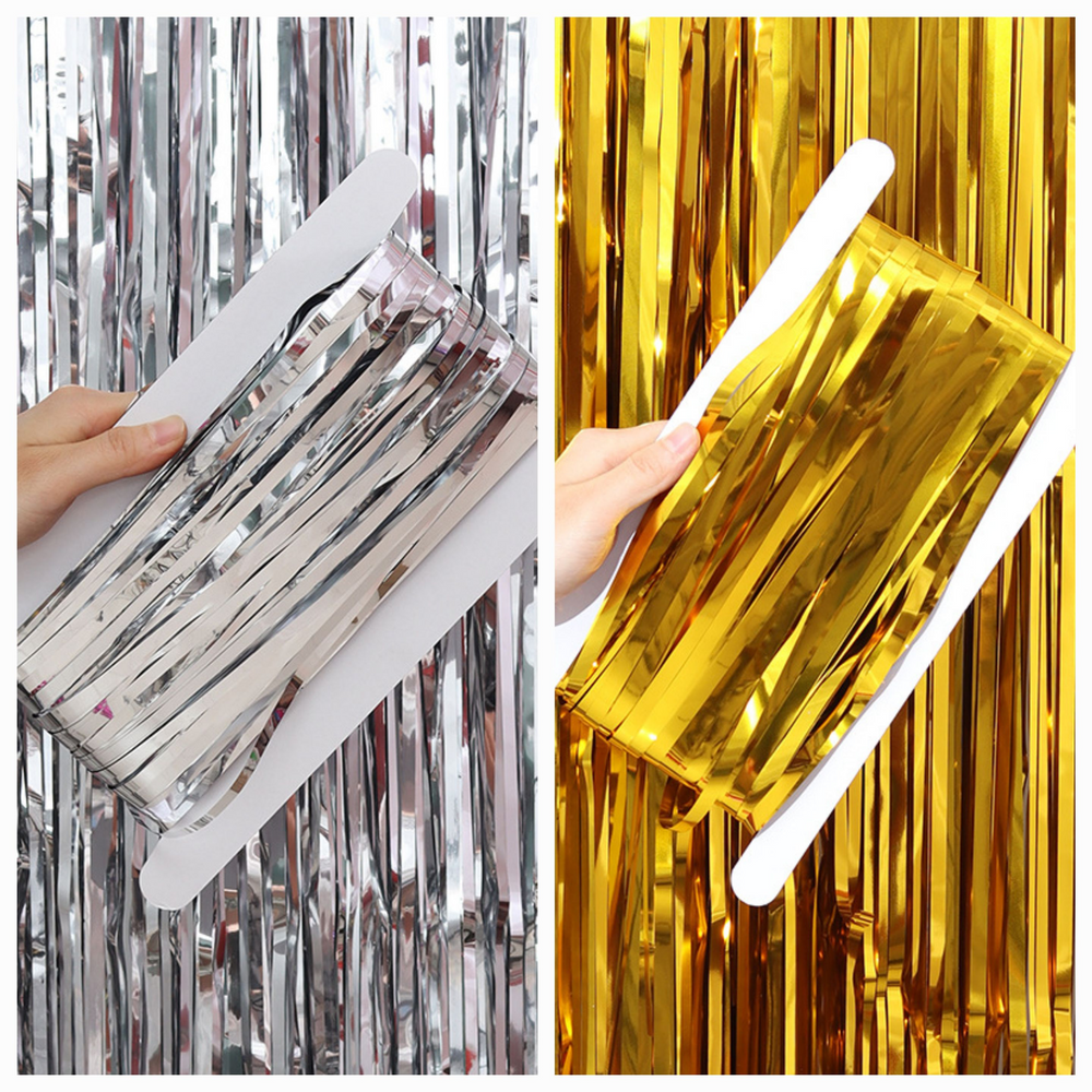 (Cortina de lluvia colores metalizados, ideal para decorar cualquier eventos).