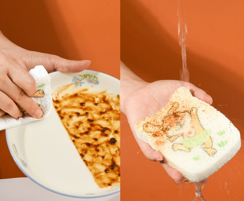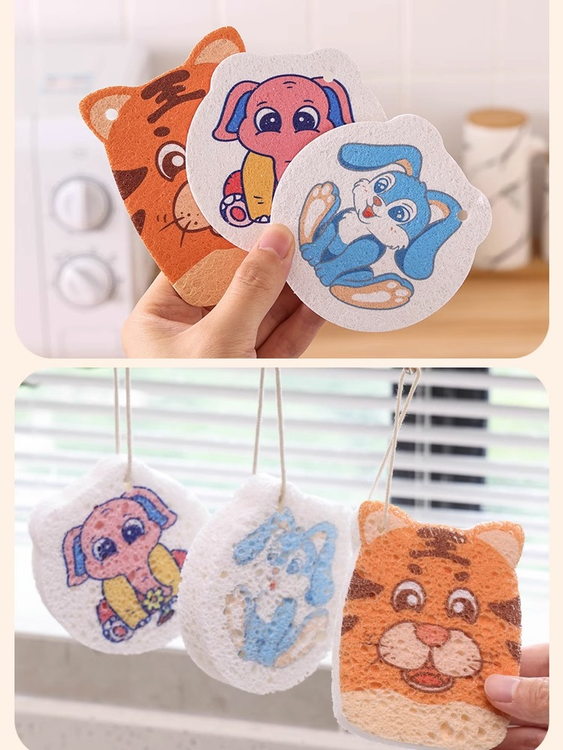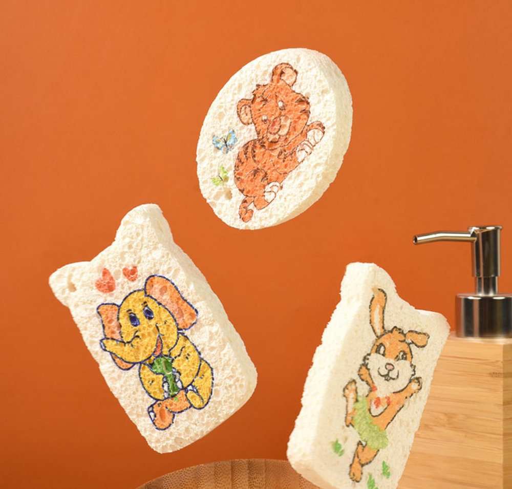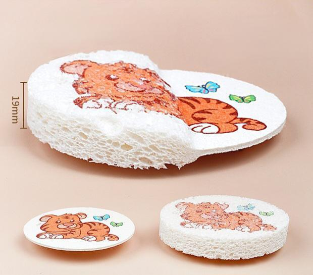 (Las Esponjas están hecha con pulpa de madera de alta calidad, en comparación con las esponja ordinarias es más resistente a la suciedad. Al contactar con el agua se expande y vuelve una textura suave y esponjoso. Ideal para limpieza facial o lavaplatos).