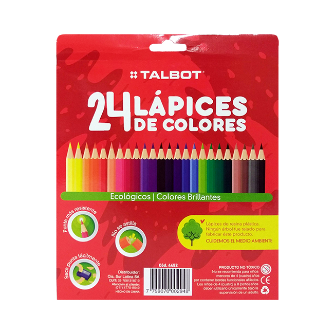 (Lápices de Colores "Talbot" x 24U. punta resistente largo en forma hexagonal, no se astilla fácilmente, material ecológico).