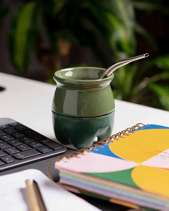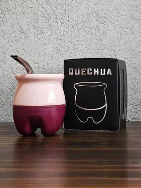 (Mate Cerámica "QUECHUA" ORIGINAL, material cerámico con pvc en la parte inferior, trae consigo una bombilla. En honor a nuestros pueblos originarios).