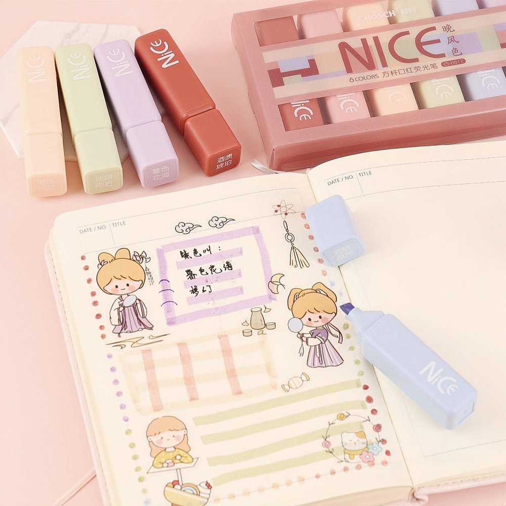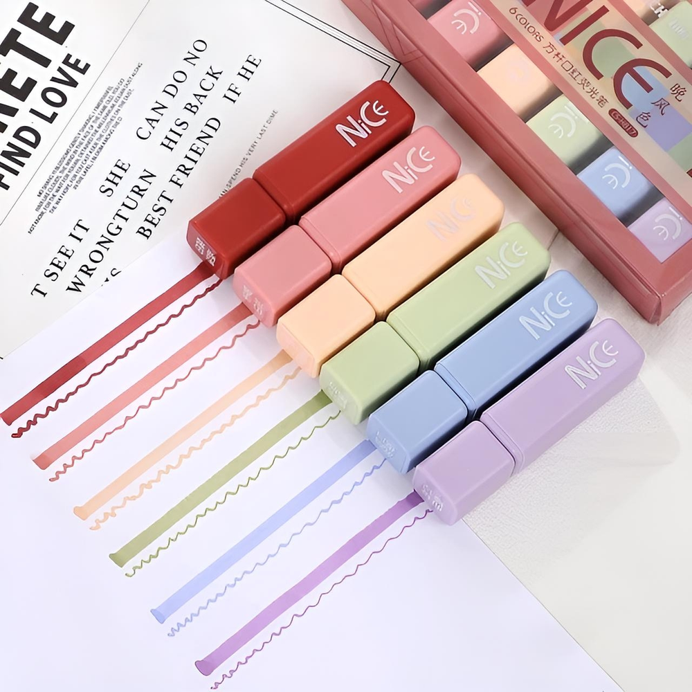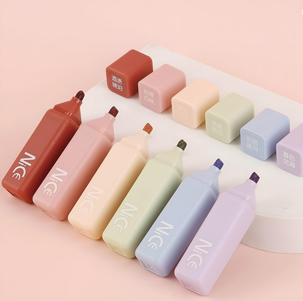 (Mini Resaltadores Nice marca "CHÓSCH" Set x 6 colores otoños mattes).
