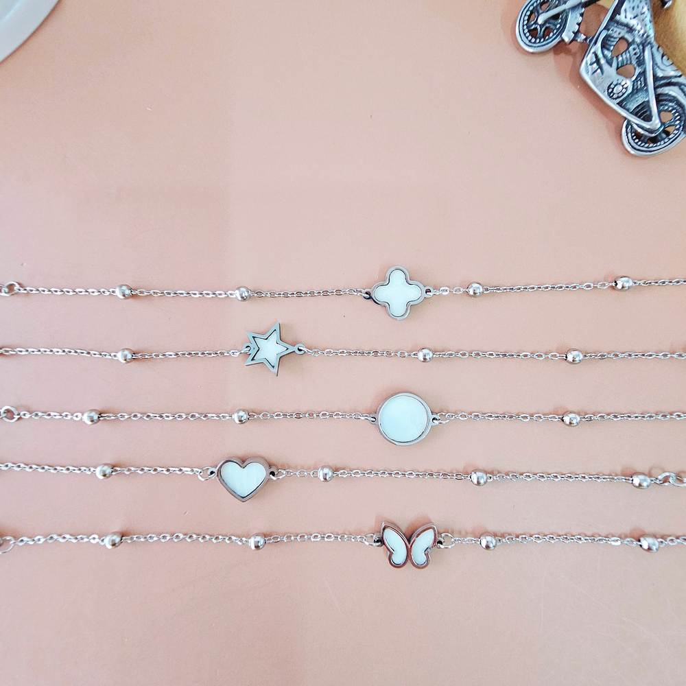 (Pulsera con Dije de diferentes diseños super elegantes con piedra blanca en su interior, material acero quirurgico, accesorio infaltable para resaltar tu look).