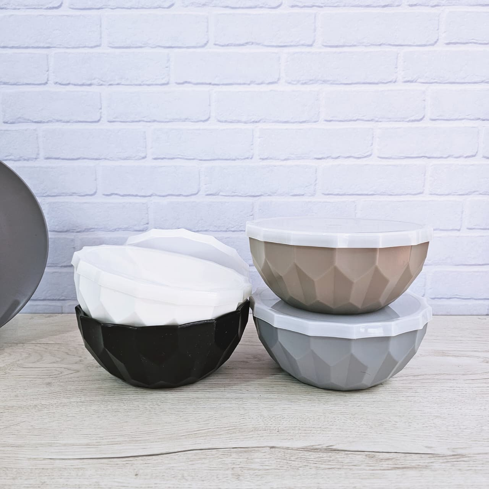 (Bowl grande diseño glamoroso facetado con tapa traslucida, material fuerte super resistente, ideal para postres, ensaladas, etc).