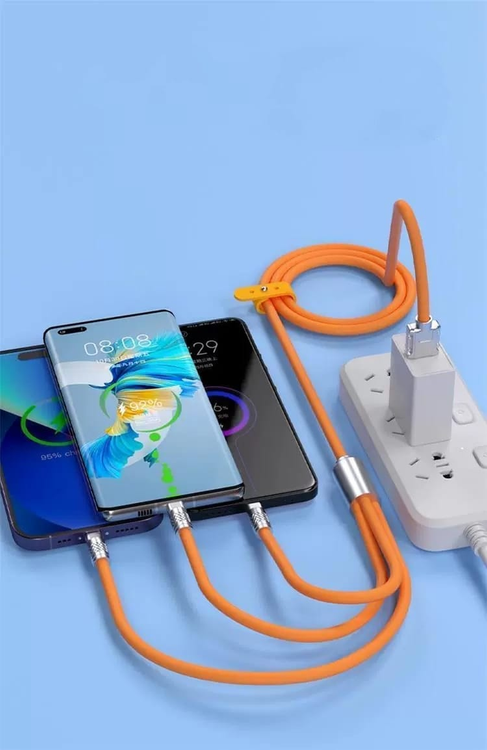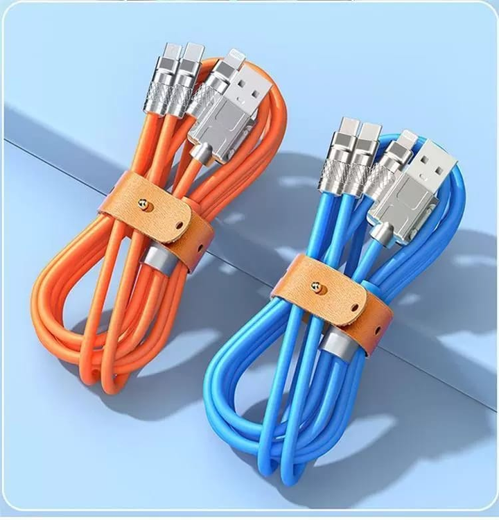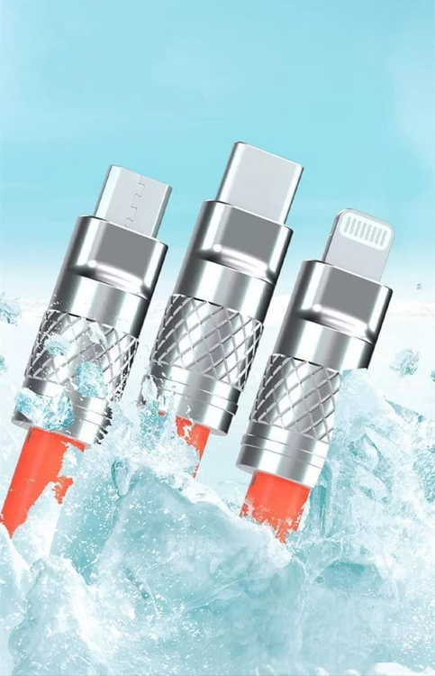 (El cable adaptador de 3 interfases, carga rápida universal de 120 W, 6 A,posee multi USB que permite conectar dispositivos con diferentes tipos de puertos. Tiene tres conectores: USB-C, Micro USB y Lightning, lo que lo hace ideal para conectar teléfonos inteligentes, tabletas, computadoras portátiles, cámaras y otros dispositivos).