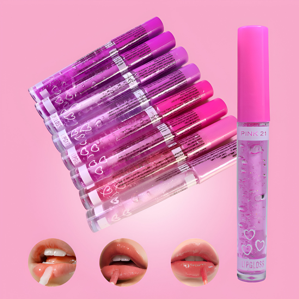 (Caja x32 unidades de Lipgloss ultra brillante "Pink 21". Variedad en 6 modelos a elección. Un acabado brillosos luciéndolos natural).