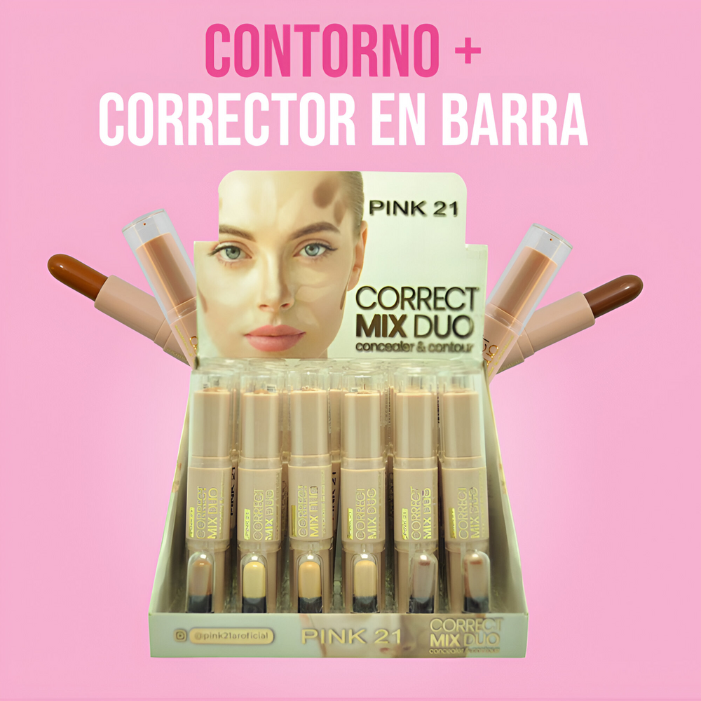 (Caja x24U. de Mix de corrector + contorno "Pink 21", 3 modelos a elección donde cada uno contiene 2 tonos + muestras de cada tono. Ideal para retocarte durante el día y destacar tu maquillaje).