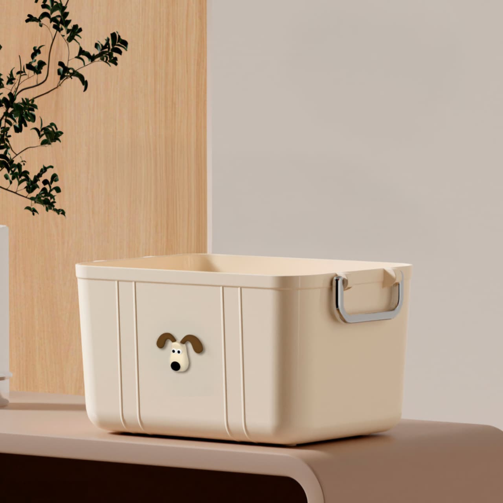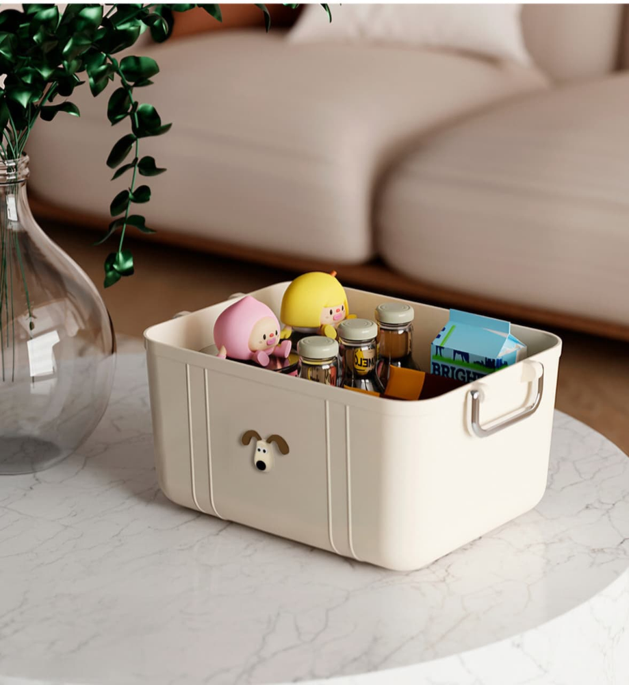 (Cuenta con un diseño vintage con asas para un mejor traslado. La tapa es de color gris translúcido y cuenta con un adhesivo con diseño de perro. No incluye tapa como el imagen.Ideal para organizar tu habitación, baño, cocina, ropa, entre otros).