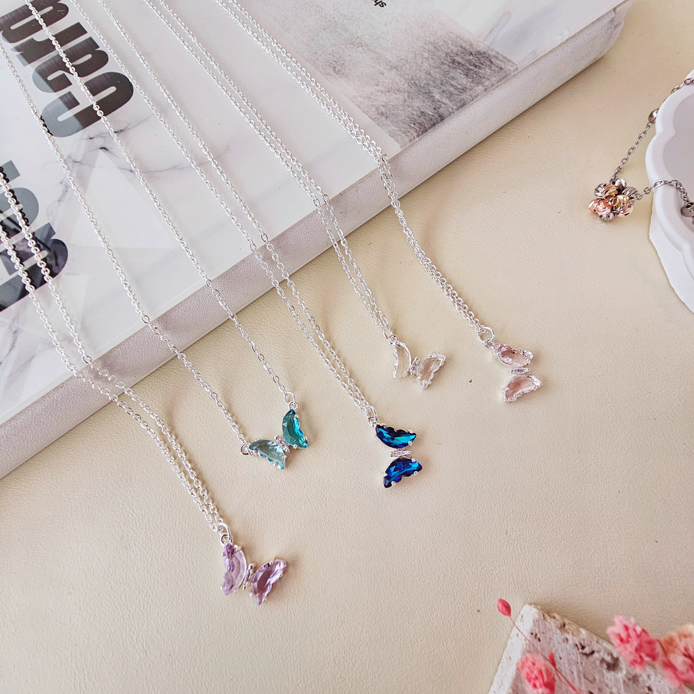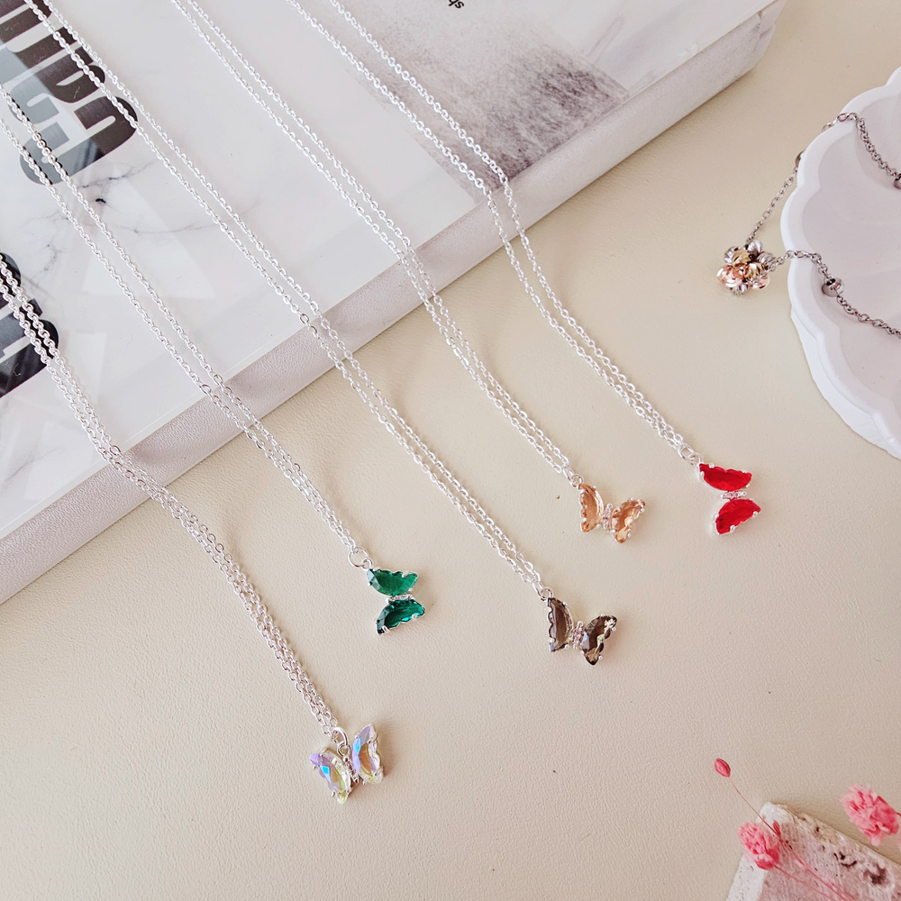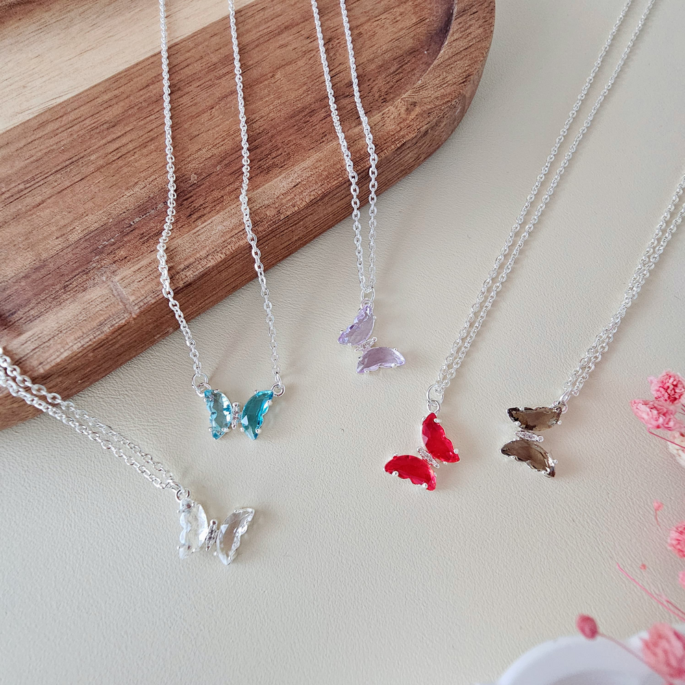 (Cada blister cuenta con un collar y un dije con diseño de mariposa de diferentes colores a elección. Ideal para realzar un atuendo dando un toque final).