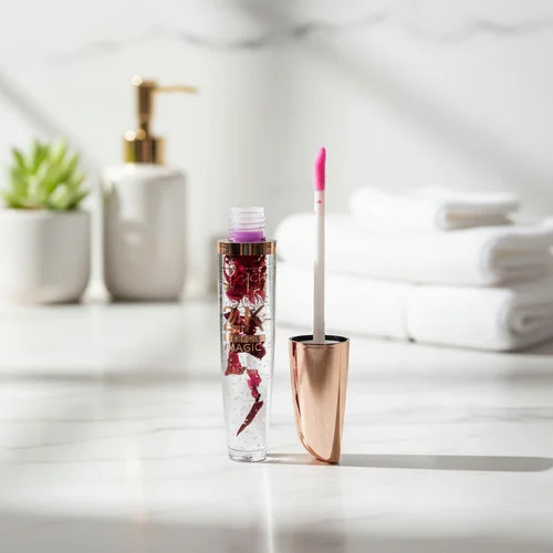(Brillo Labial con 24K láminas de oro marca "Tejar", contine pétalos de rosas, deja un acabado radiante e hidratado).