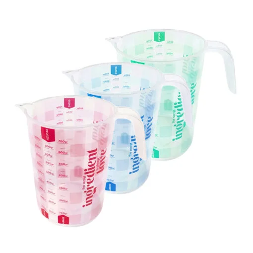 (Jarra medidora de 1 litro, cuenta con medidor para arroz, leche, azúcar, cacao harina y cémola).