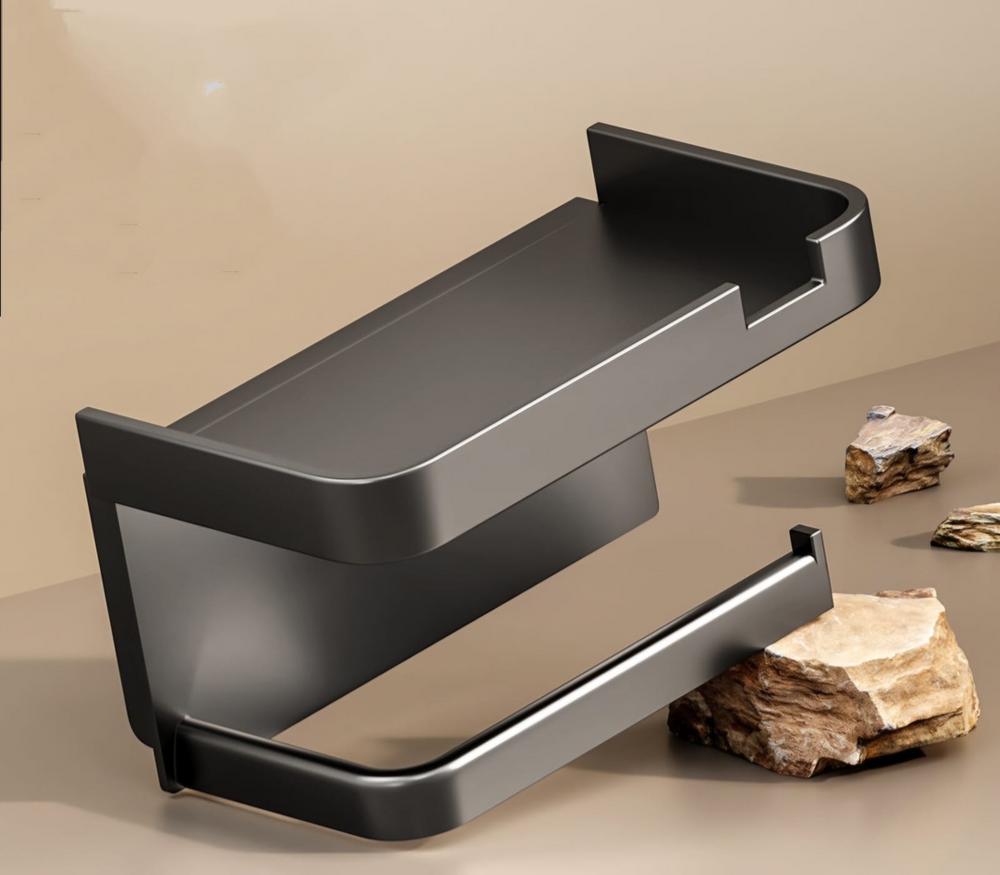 (Cuenta con un portarrollos y una superficie plana multiuso. Incluye un adhesivo. Ideal para colocar un aromatizante y velas).