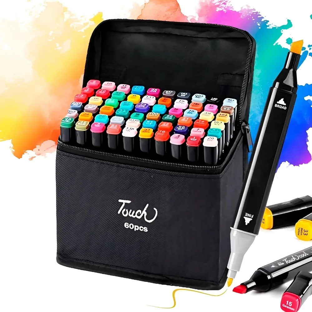 (Contiene 60 marcadores de 15 cm de largo, que cuentan con doble punta una biselada de 6 mm y una fina de 1 mm, con tapa codificada por colores y . Brinda un secado rápido, colores vibrantes y no se corren. Ideal para regalar).