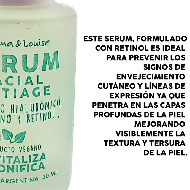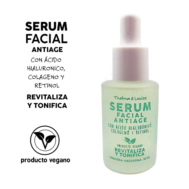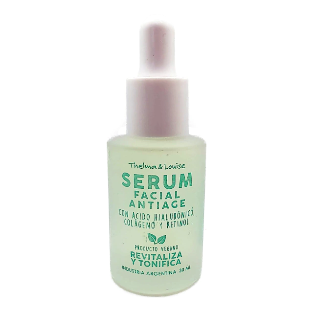 (Serum facial antiage con acido hialuronico, colageno y retinol marca "Thelma y Louise".Revitaliza y tonifica. Es genial para añadir a nuestra rutina de limpieza).