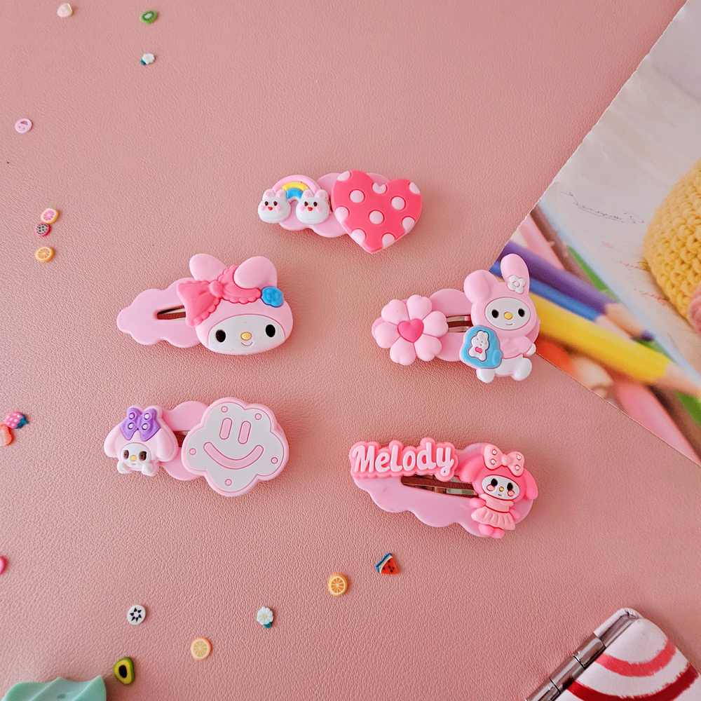 (Cada blister cuenta con 6 hebillas con temática de "My Melody". Vienen 2 modelos diferentes. Ideal para realizar peinados y destacar tu cabello).