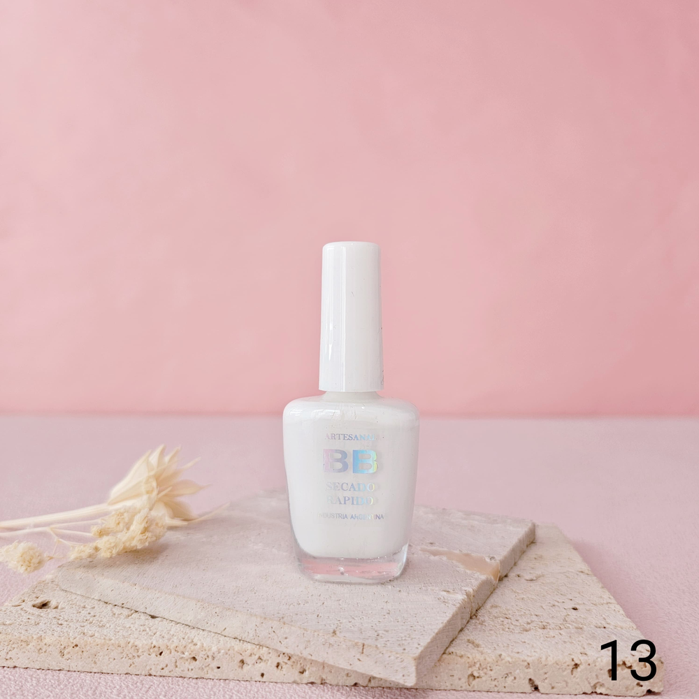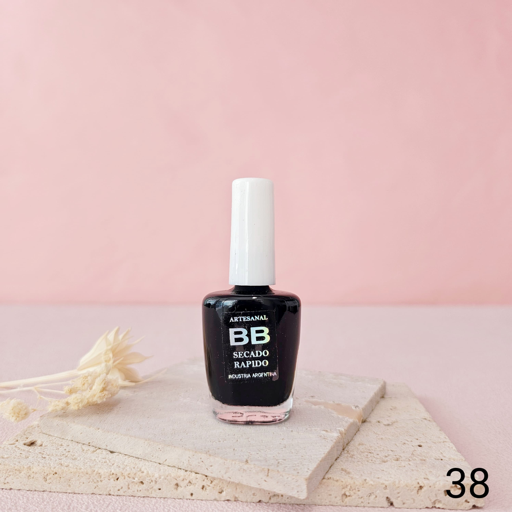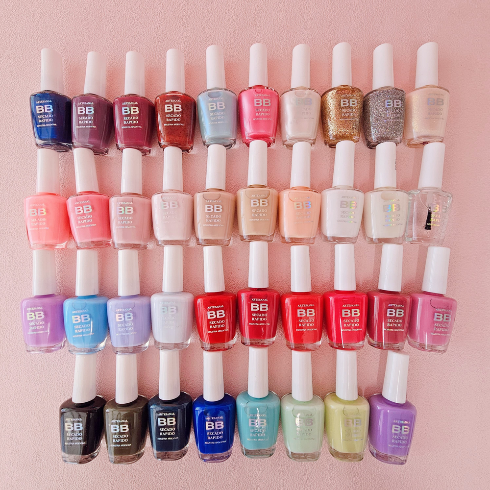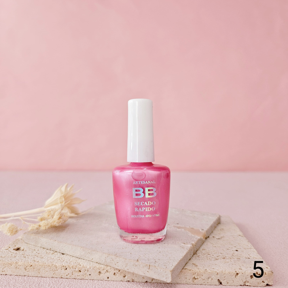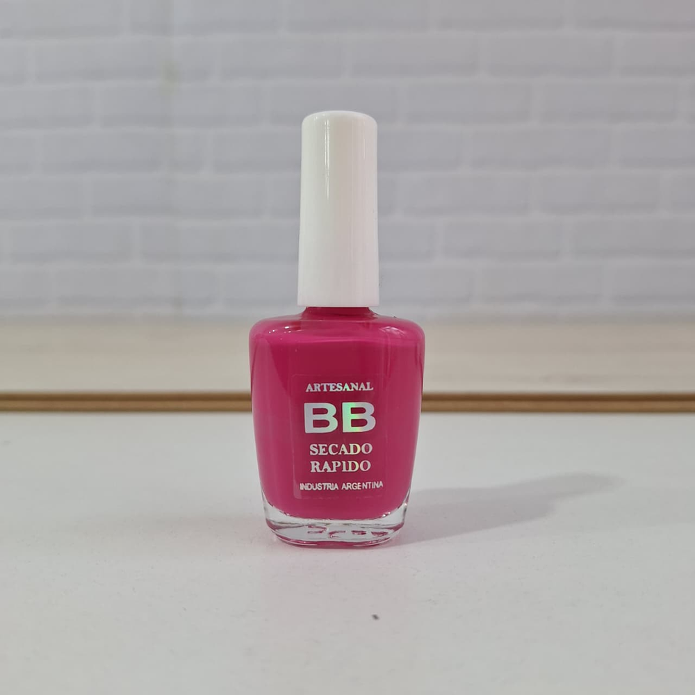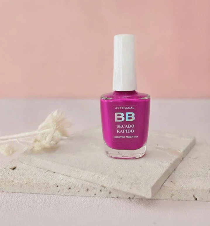 (Esmalte común marca"BB". Brinda un secado rápido además de proporcionar dureza, flexibilidad y brillo).