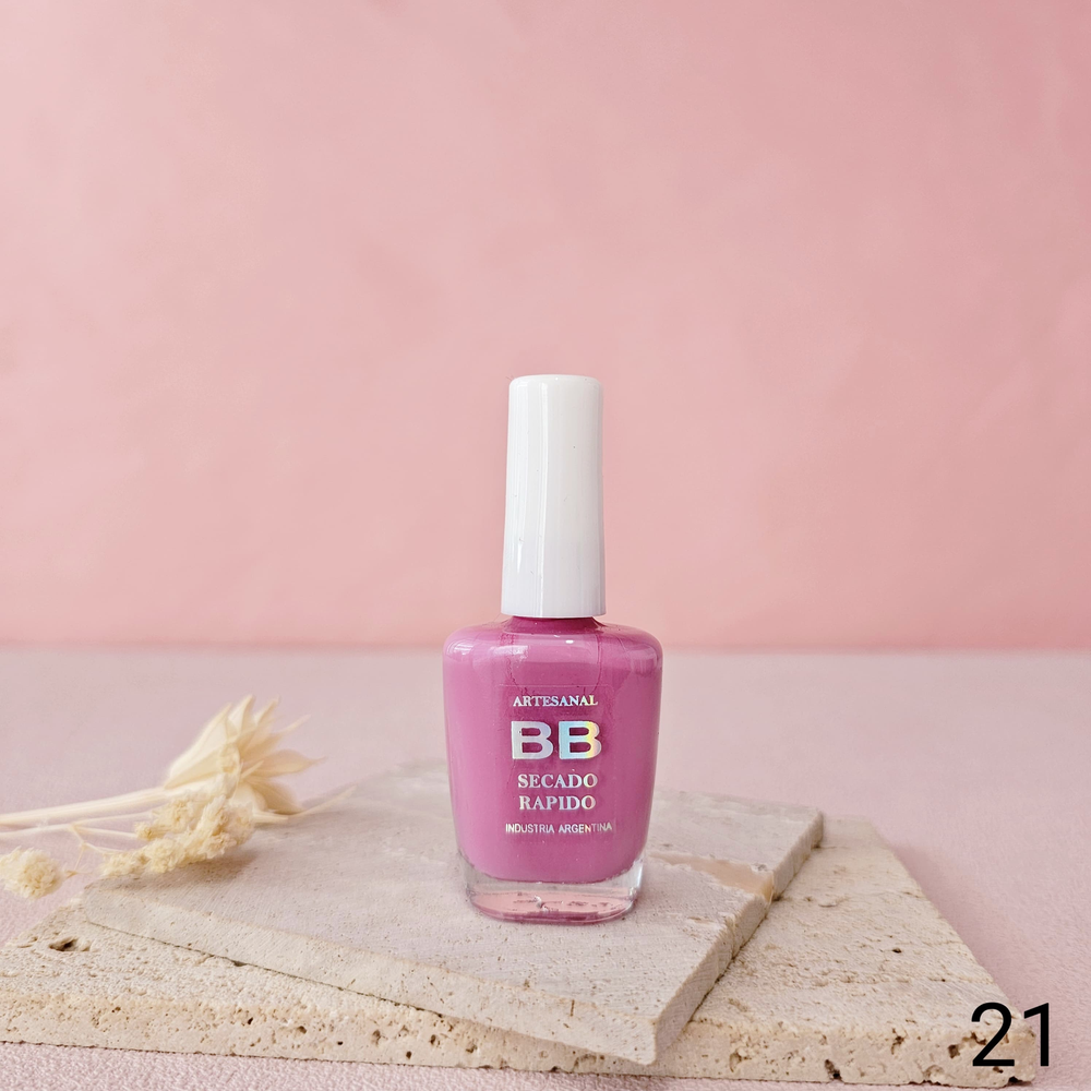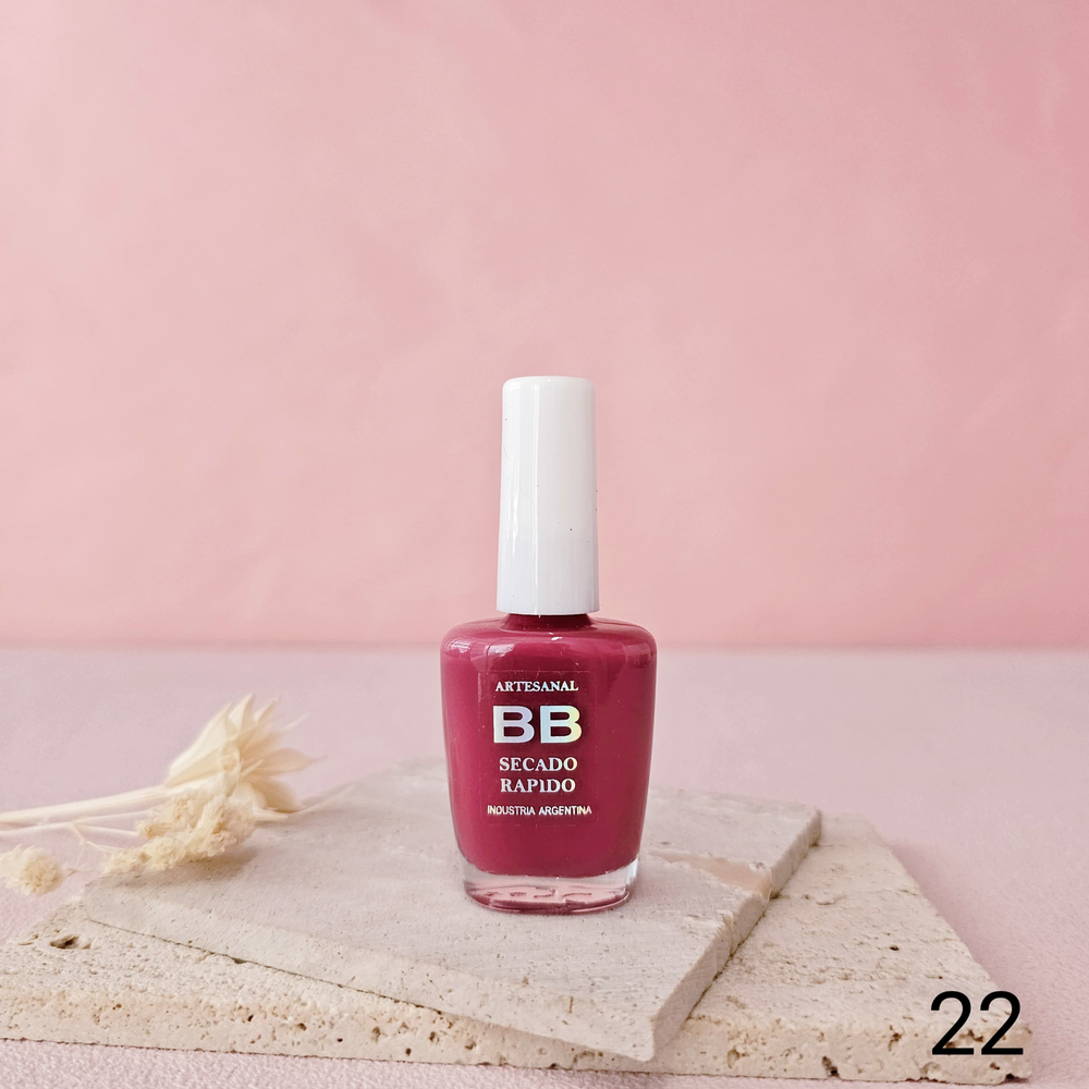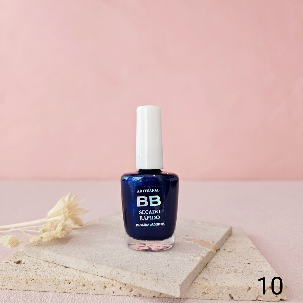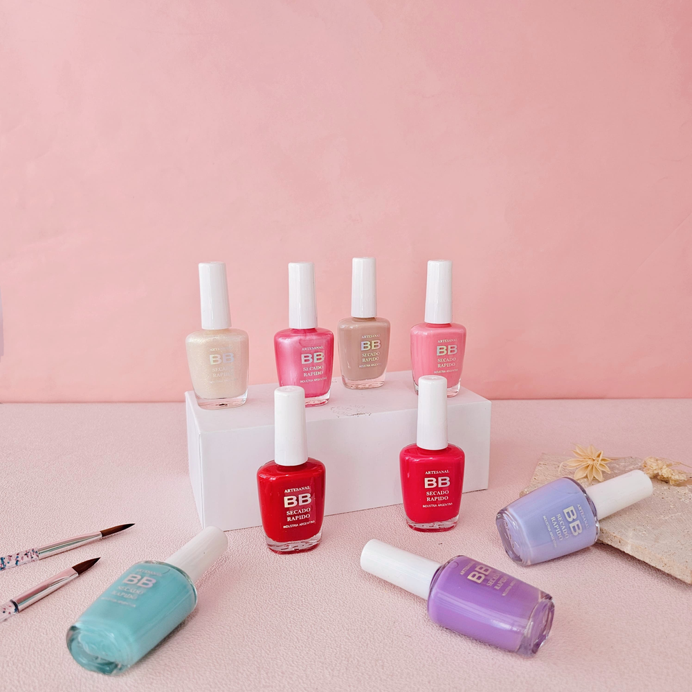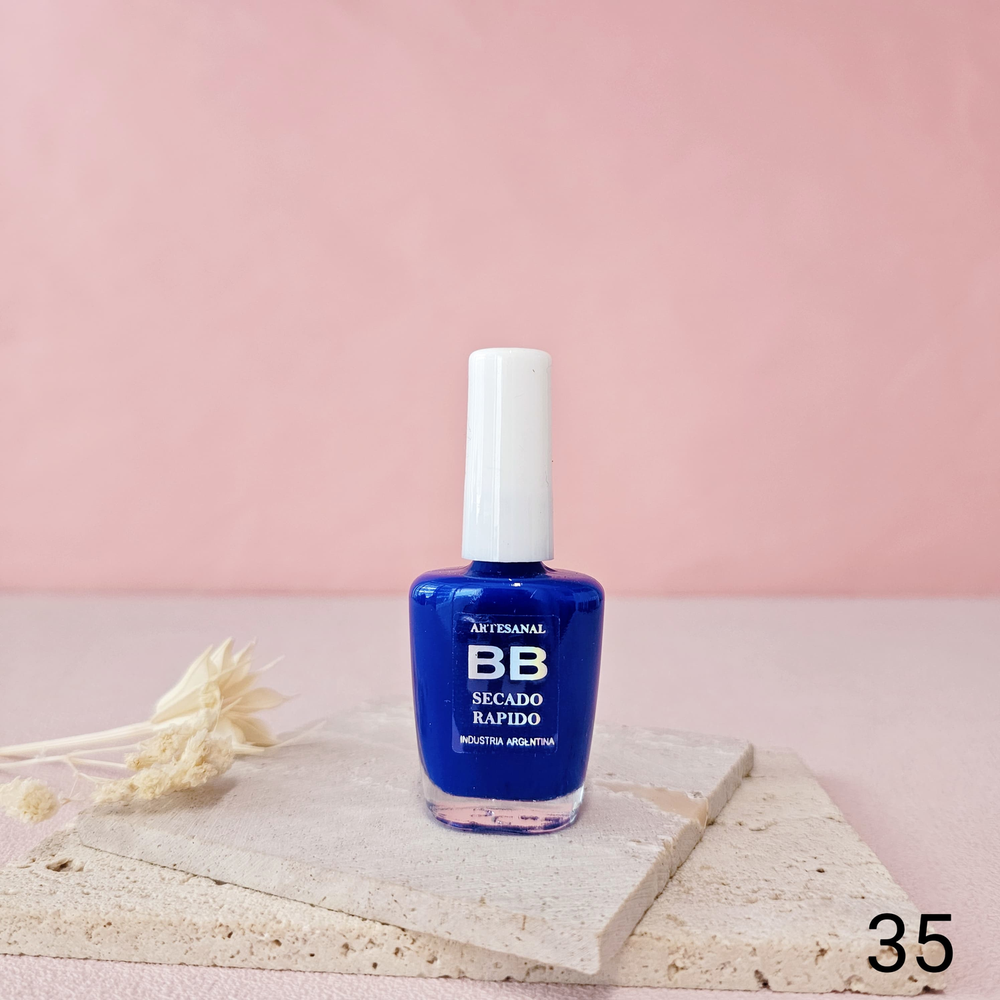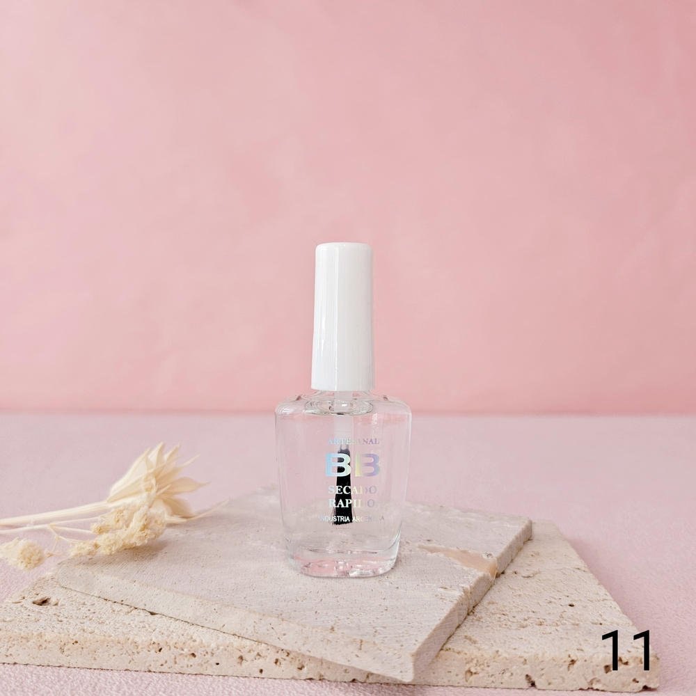 (Esmalte común marca"BB". Brinda un secado rápido además de proporcionar dureza, flexibilidad y brillo).