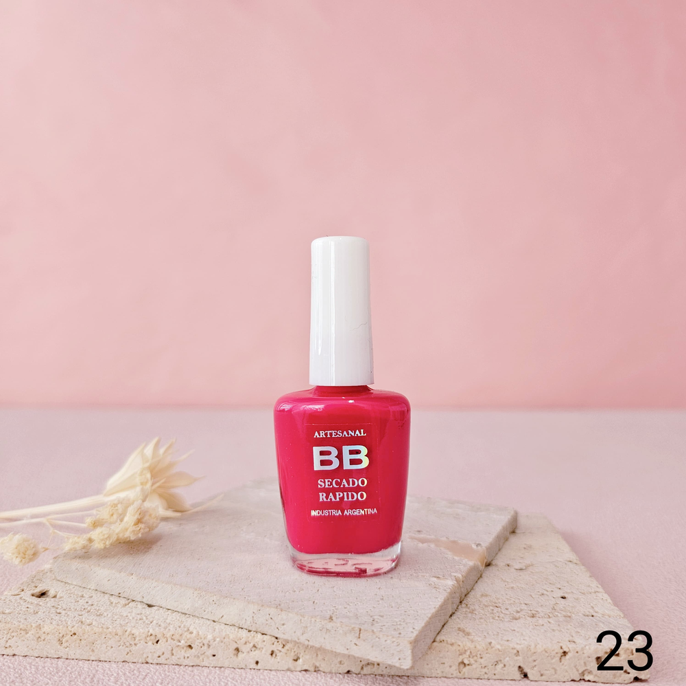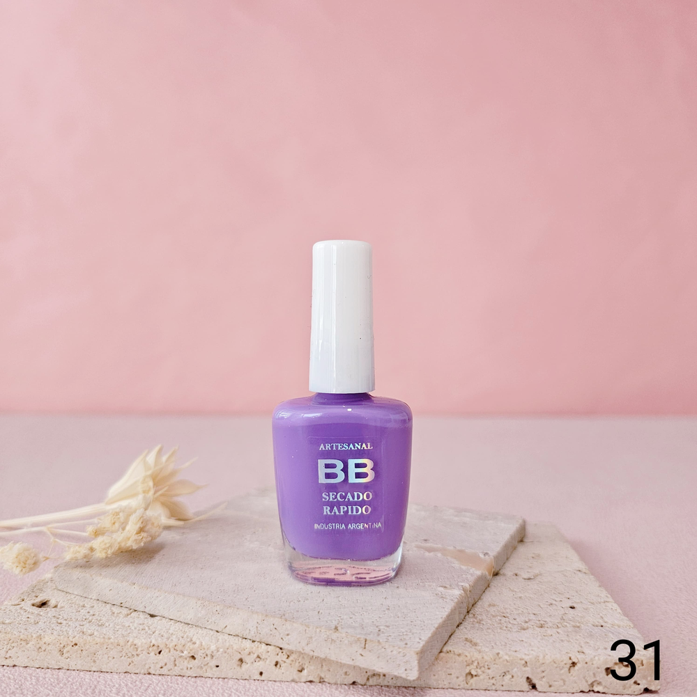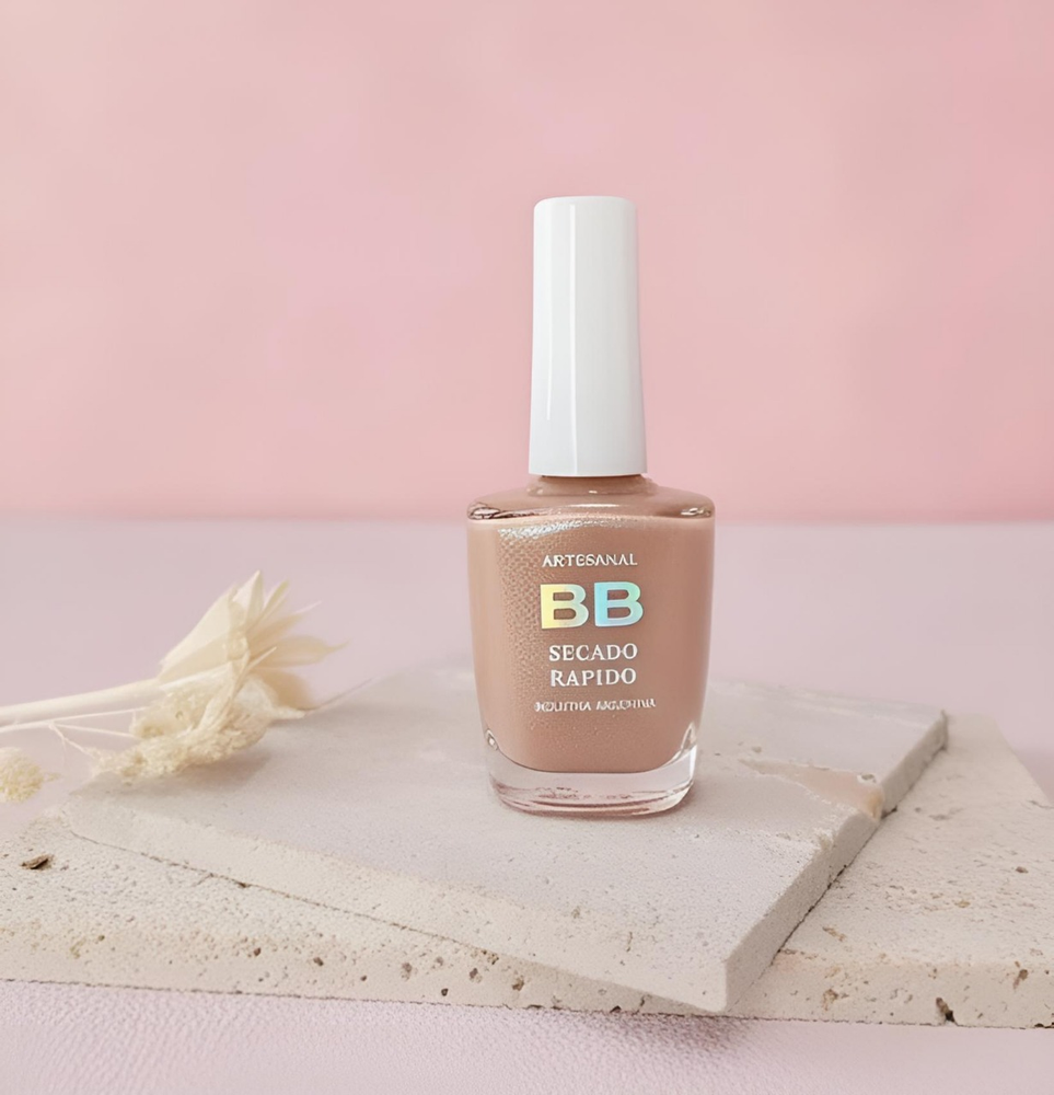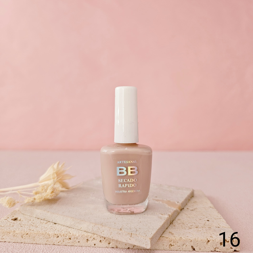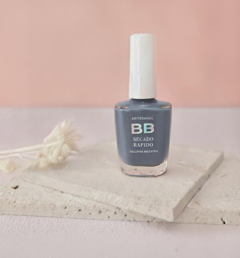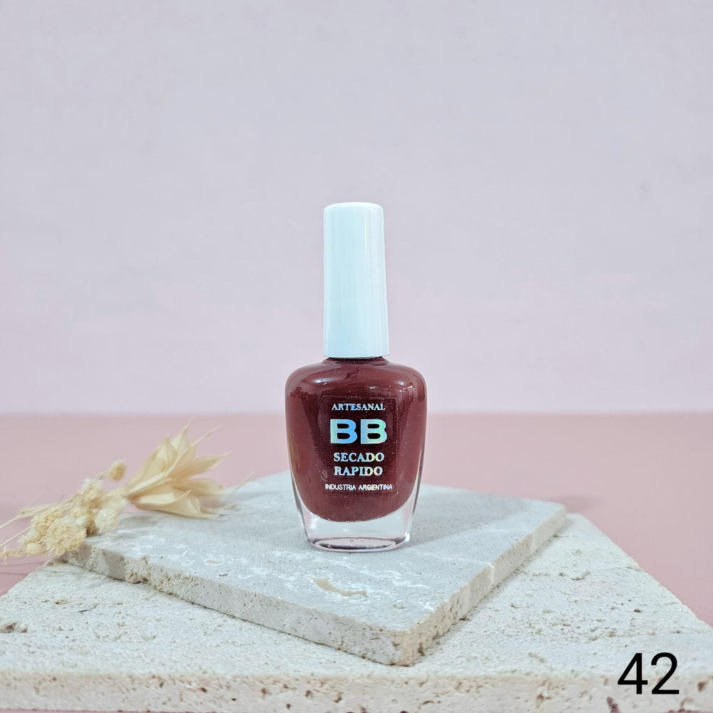 (Esmalte común marca"BB". Brinda un secado rápido además de proporcionar dureza, flexibilidad y brillo).