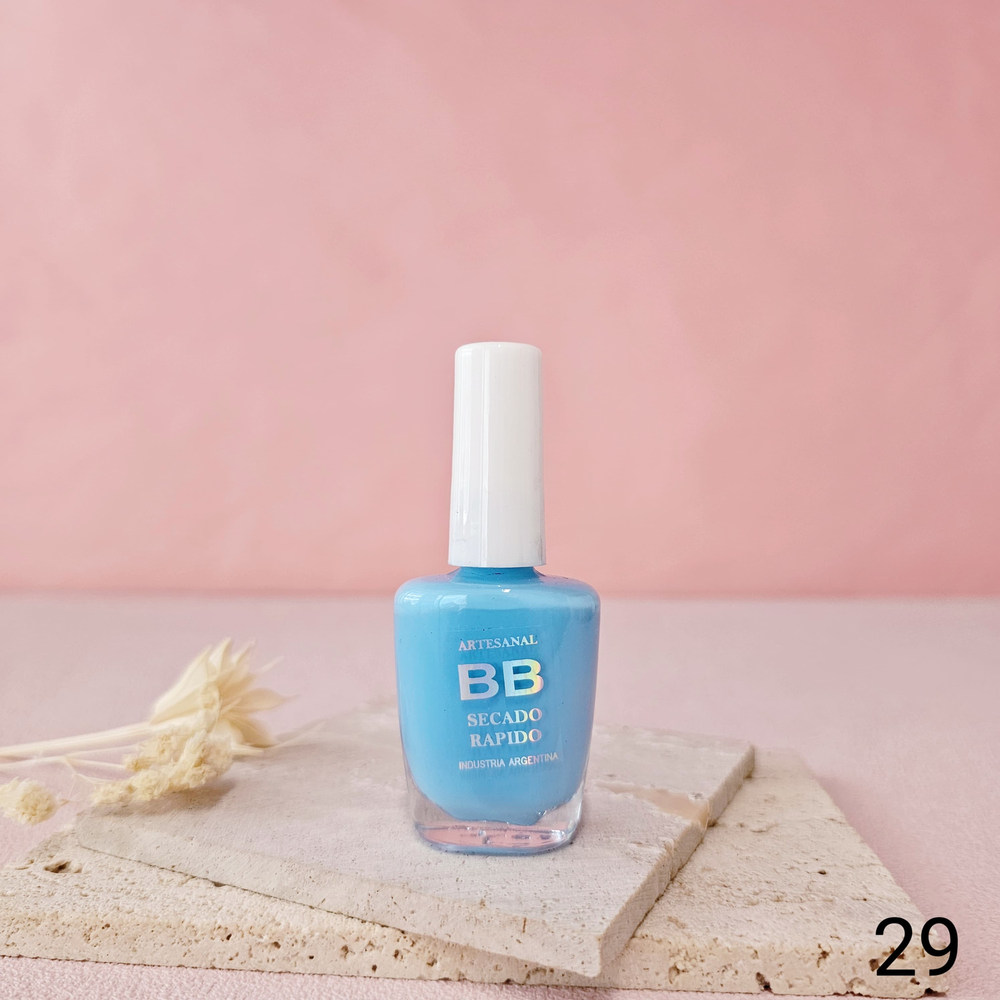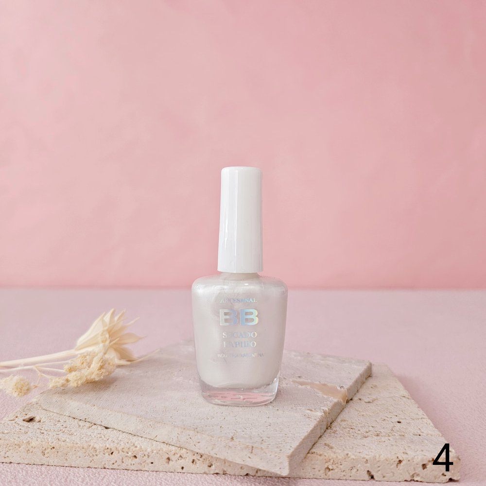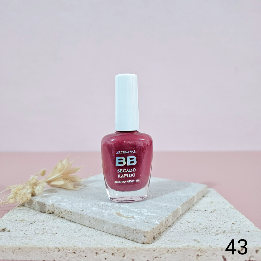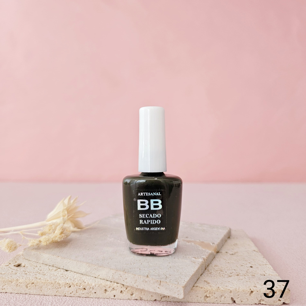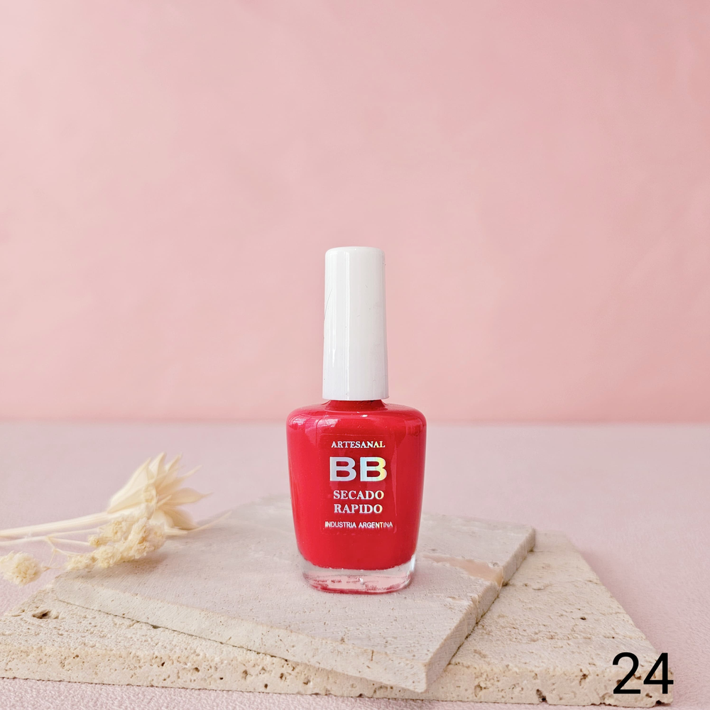 (Esmalte común marca"BB". Brinda un secado rápido además de proporcionar dureza, flexibilidad y brillo).