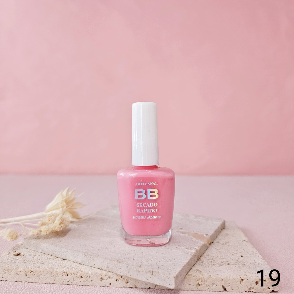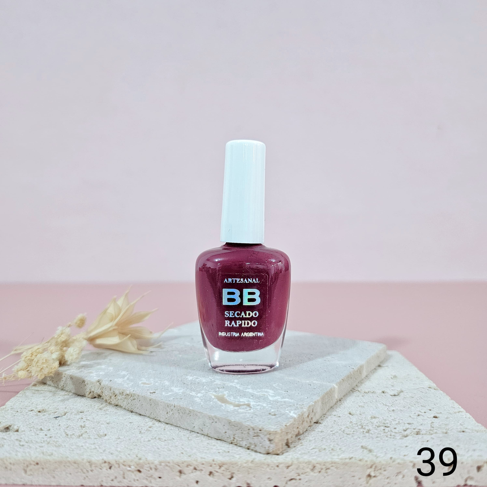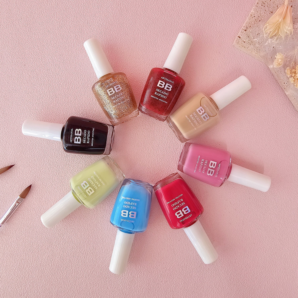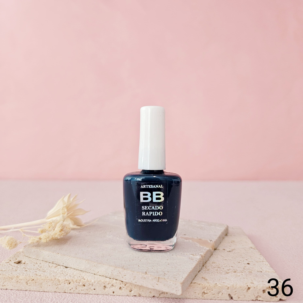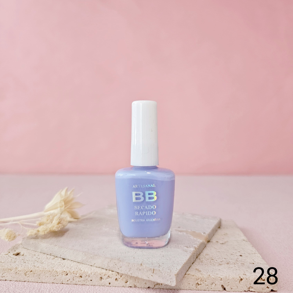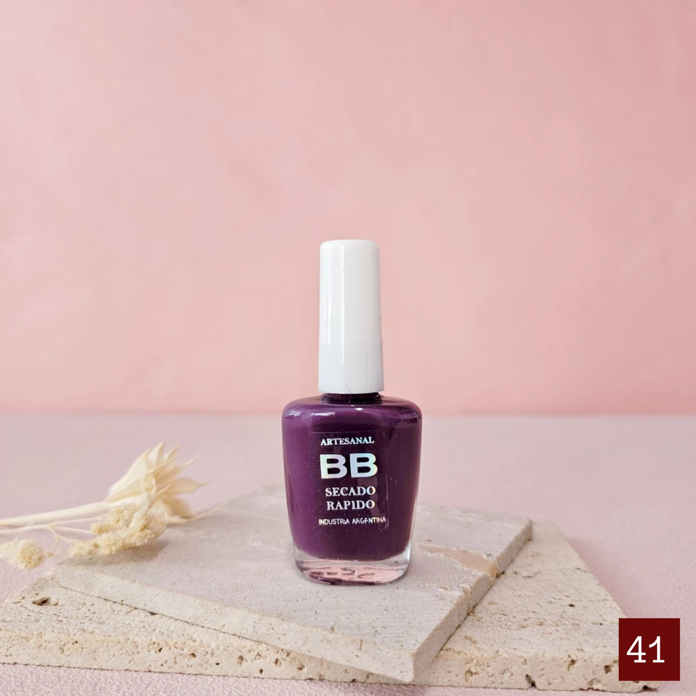 (Esmalte común marca"BB". Brinda un secado rápido además de proporcionar dureza, flexibilidad y brillo).