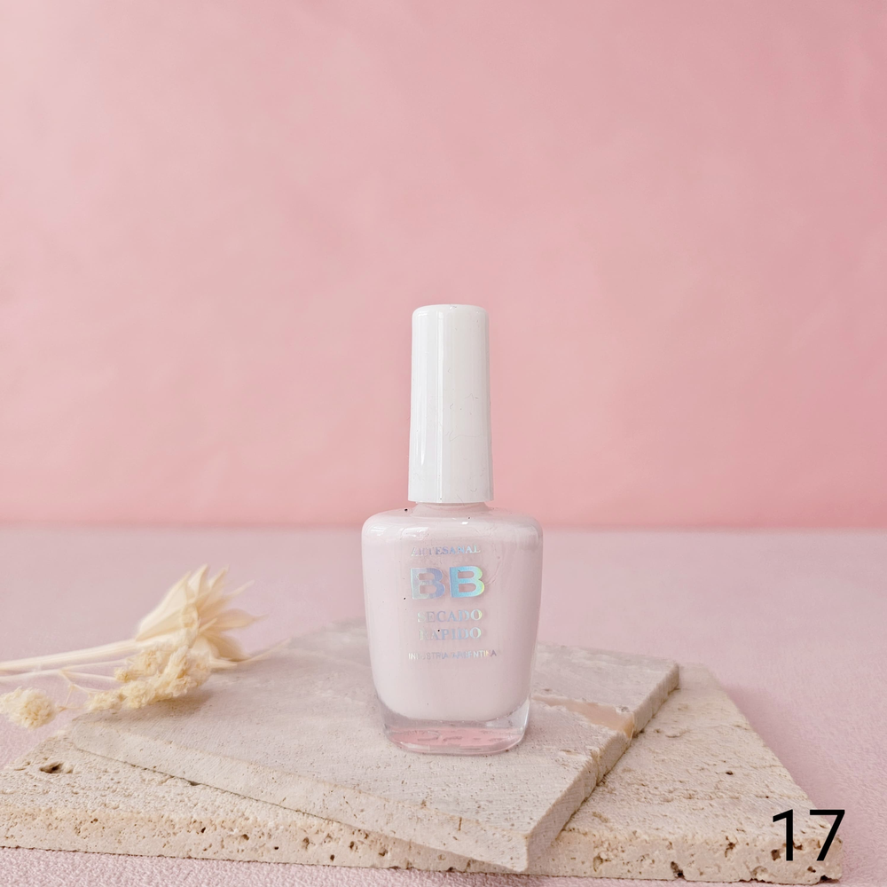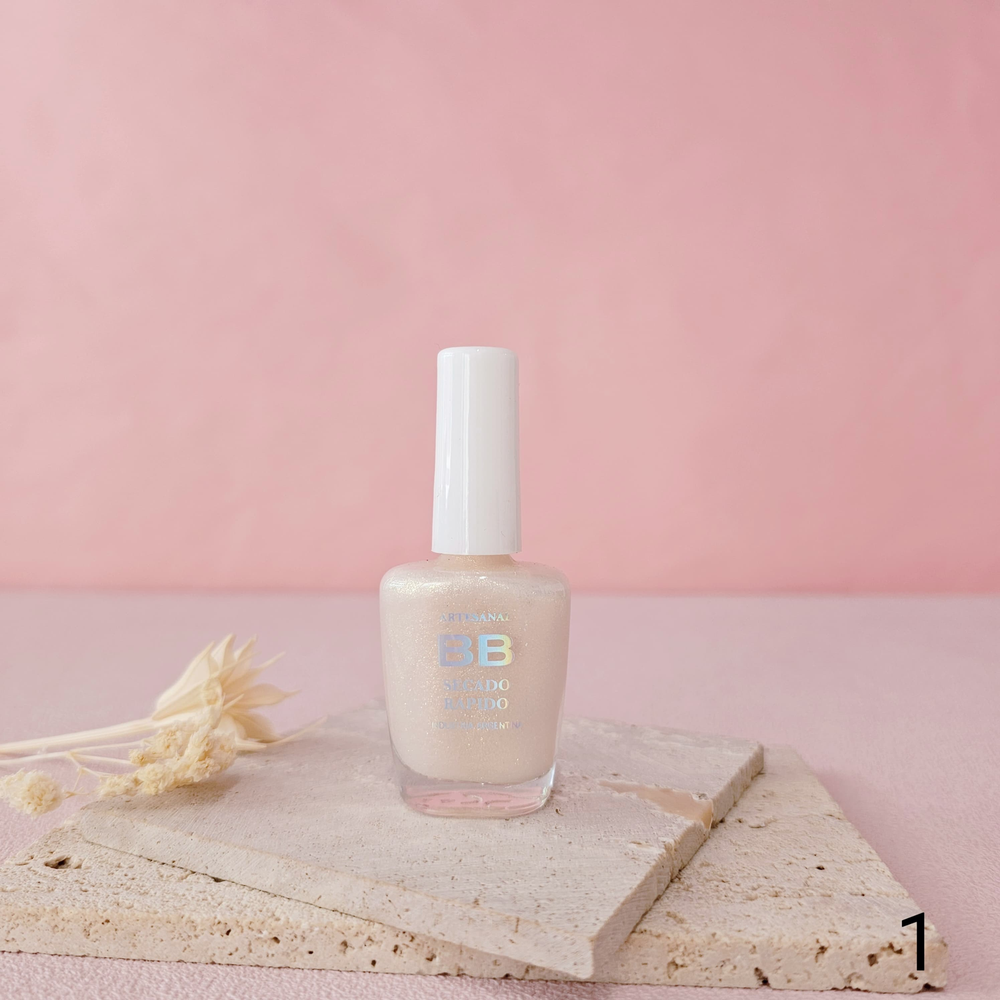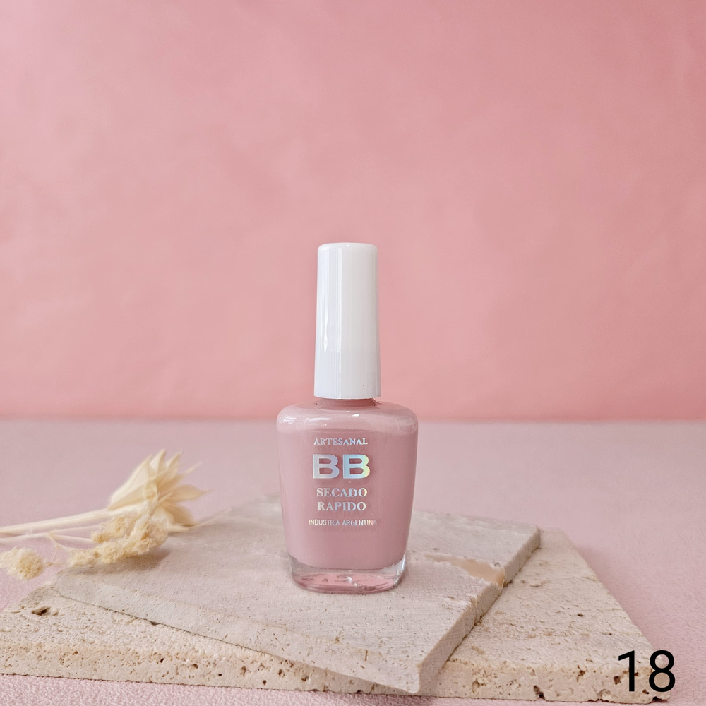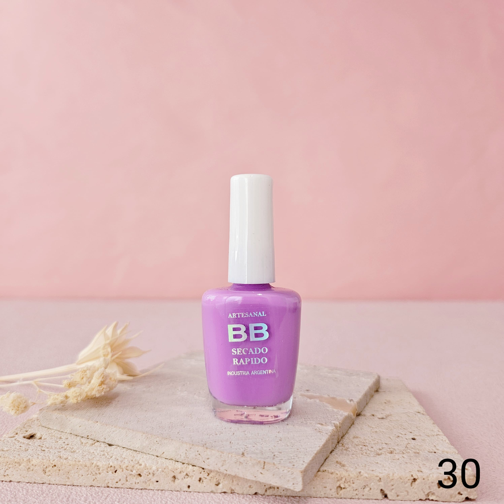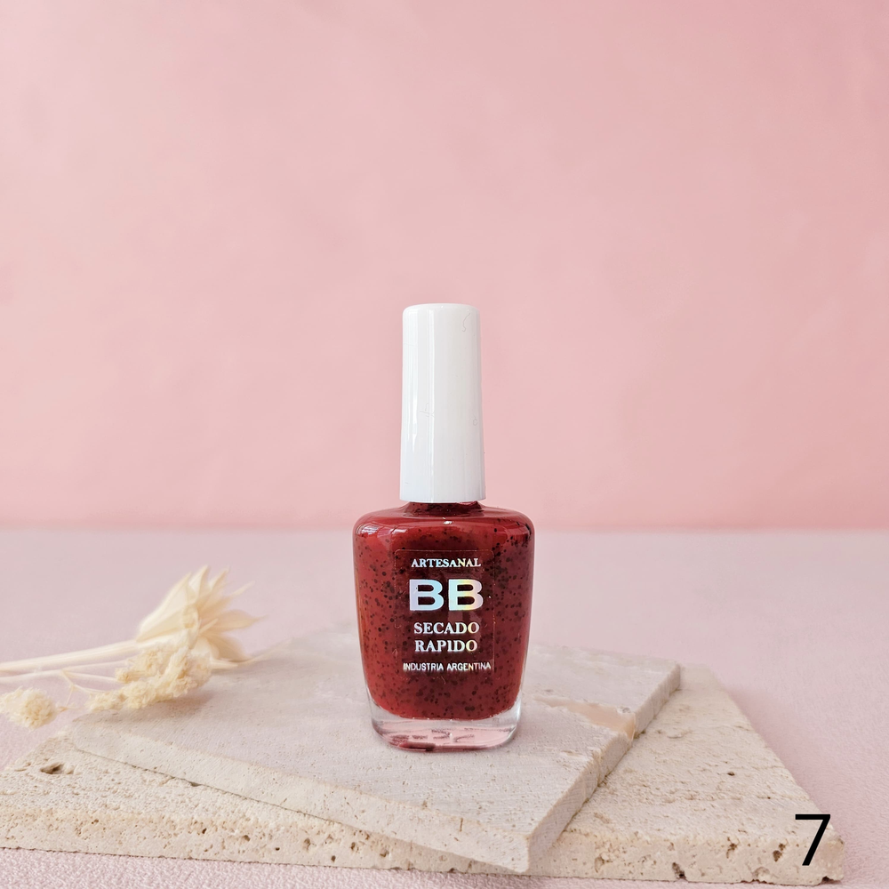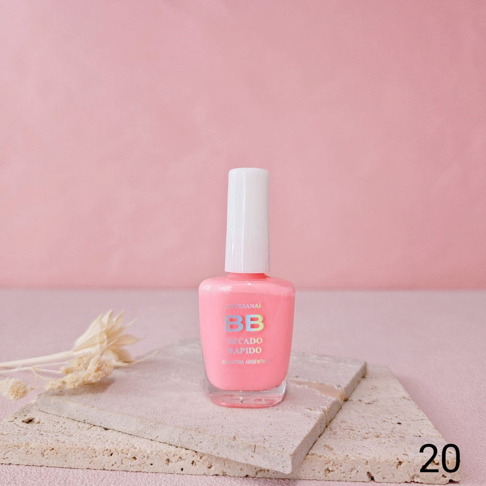 (Esmalte común marca"BB". Brinda un secado rápido además de proporcionar dureza, flexibilidad y brillo).