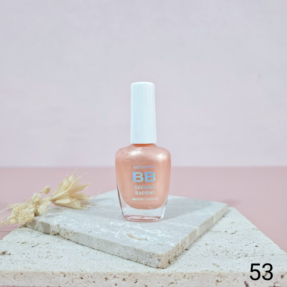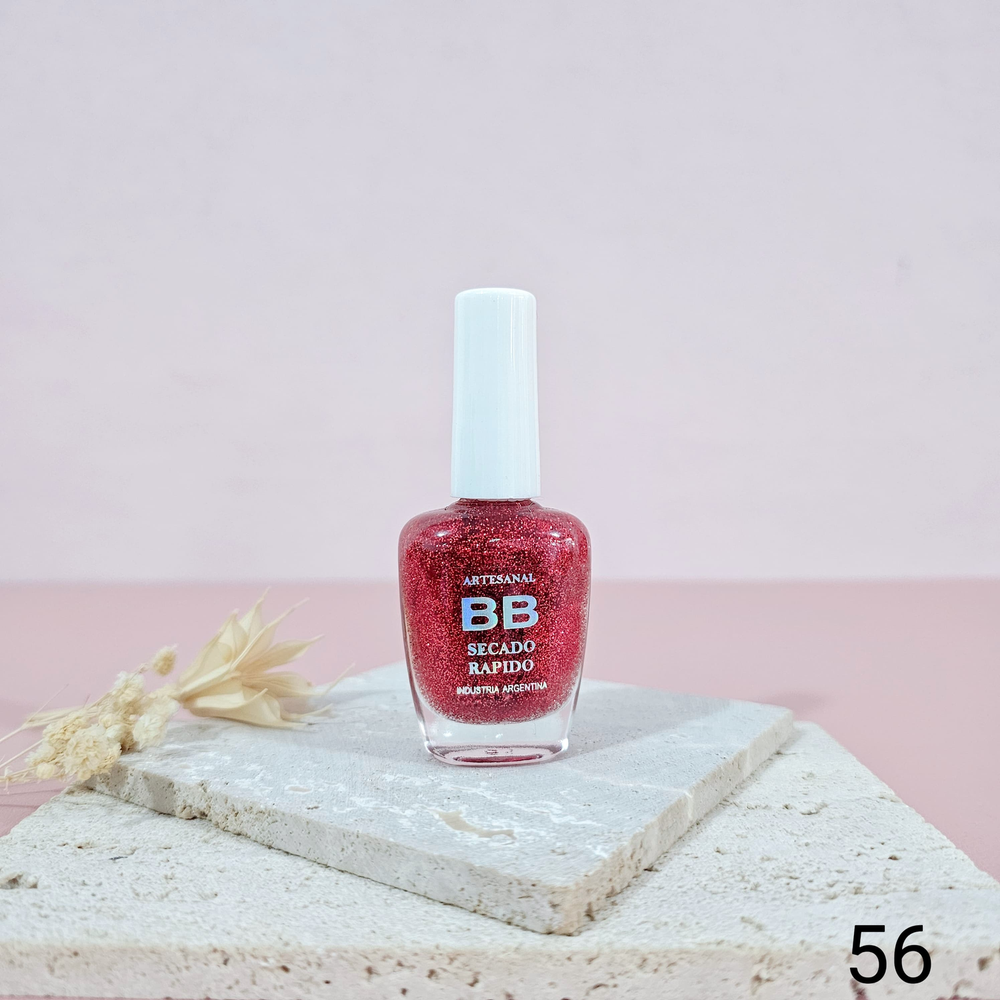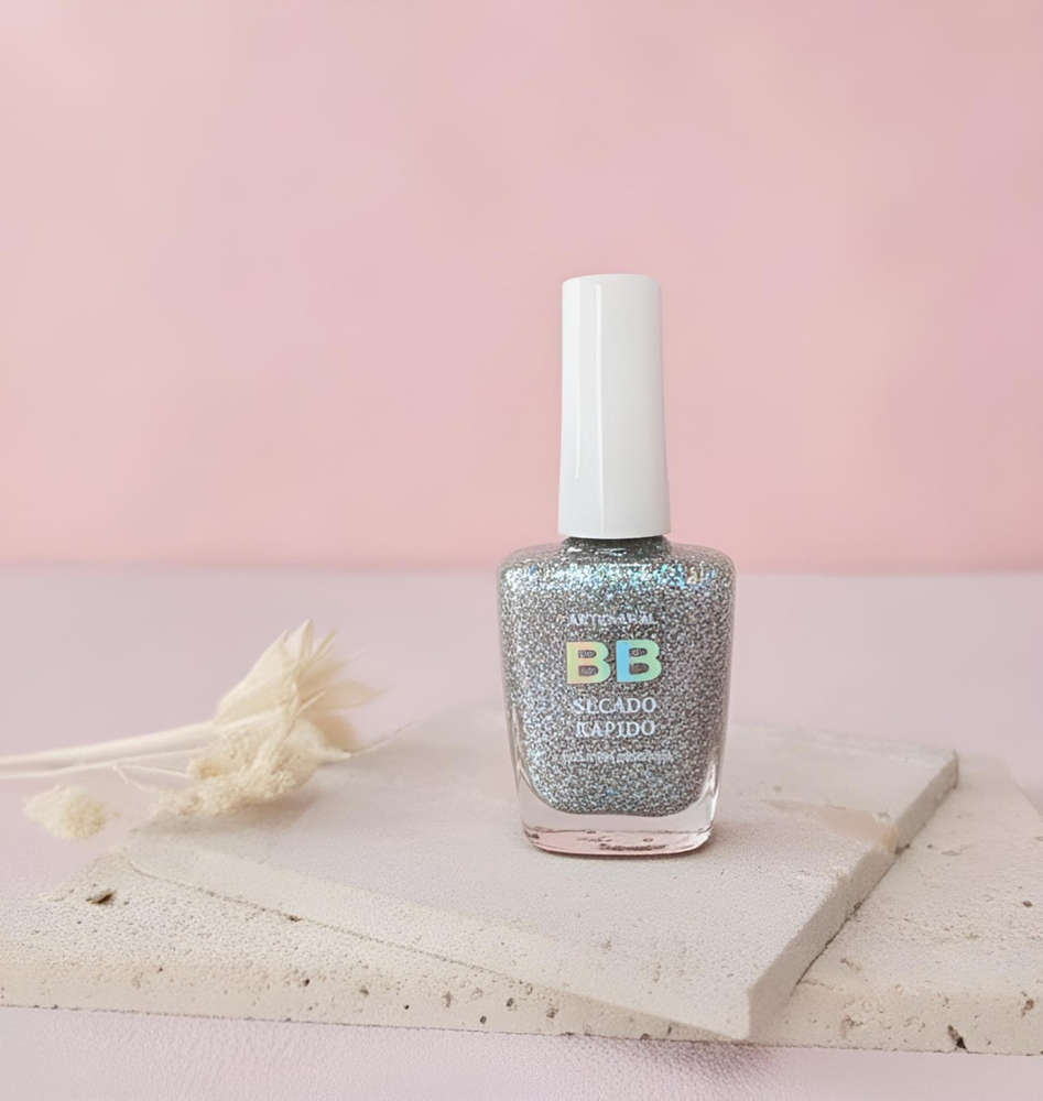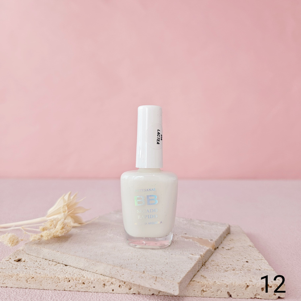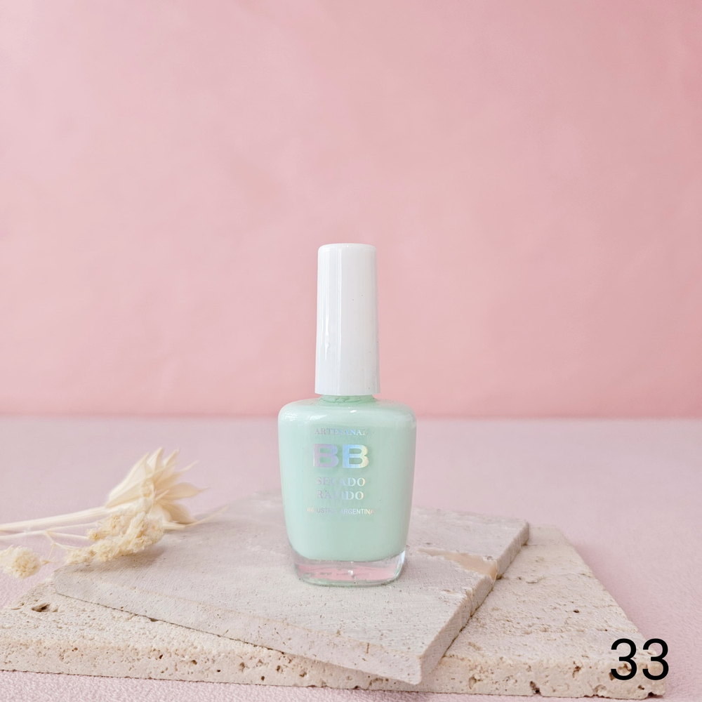 (Esmalte común marca"BB". Brinda un secado rápido además de proporcionar dureza, flexibilidad y brillo).