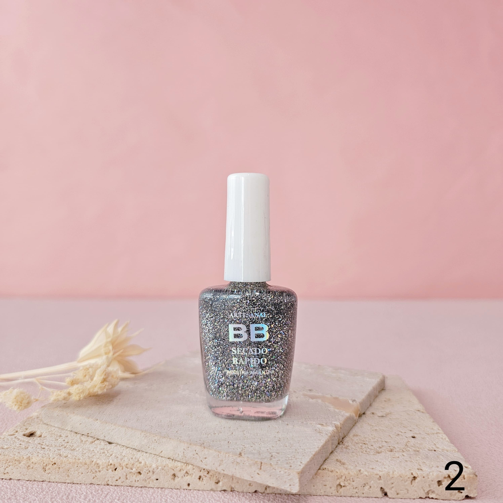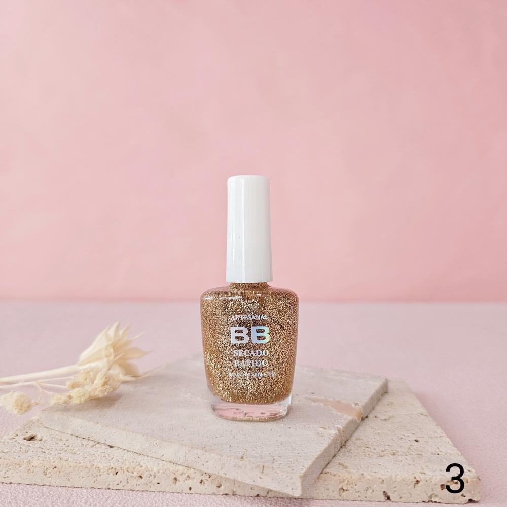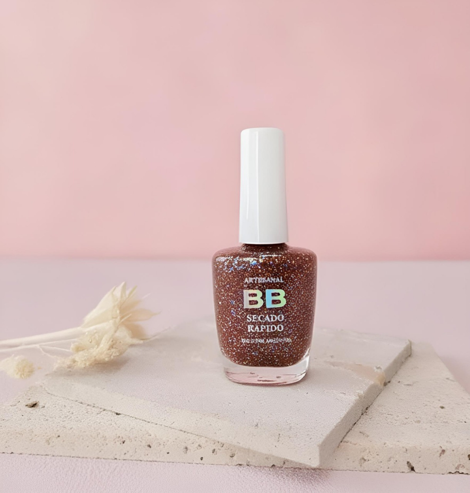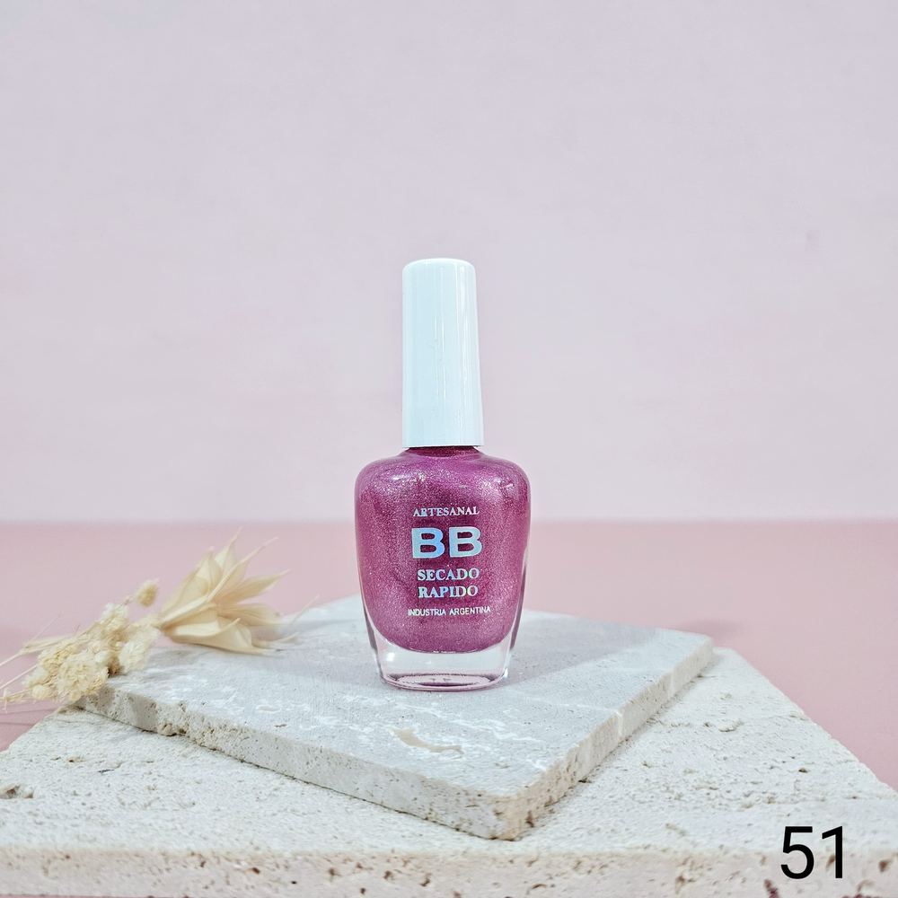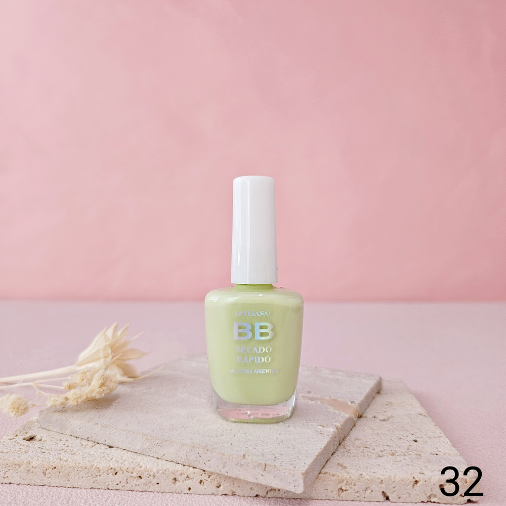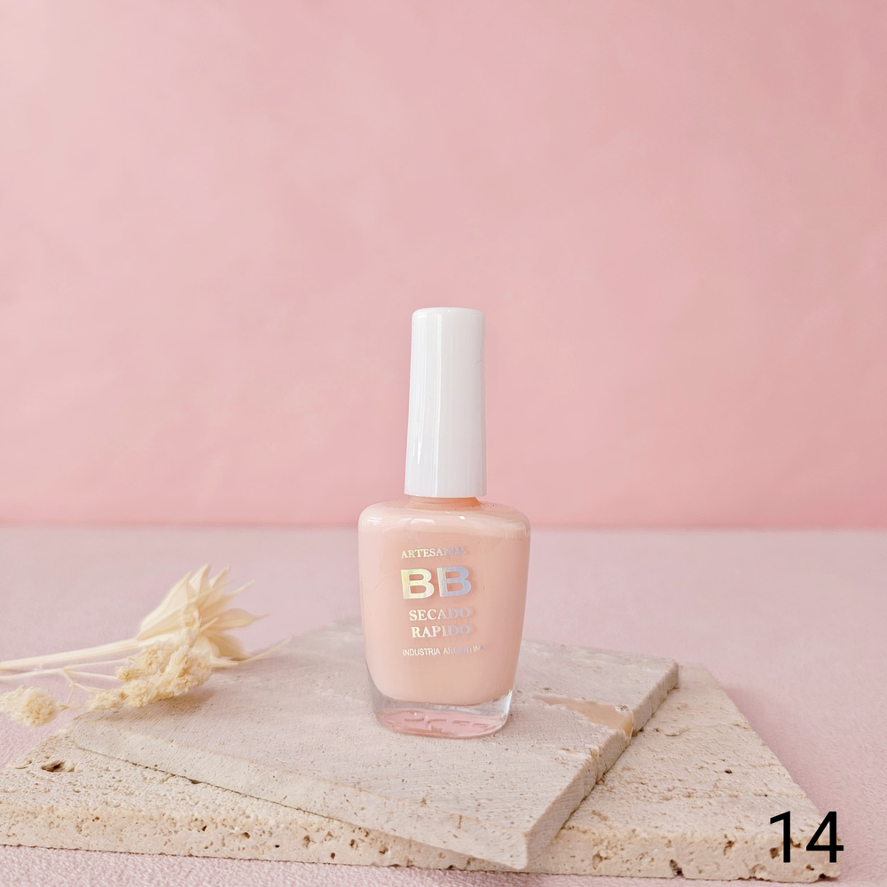 (Esmalte común marca"BB". Brinda un secado rápido además de proporcionar dureza, flexibilidad y brillo).