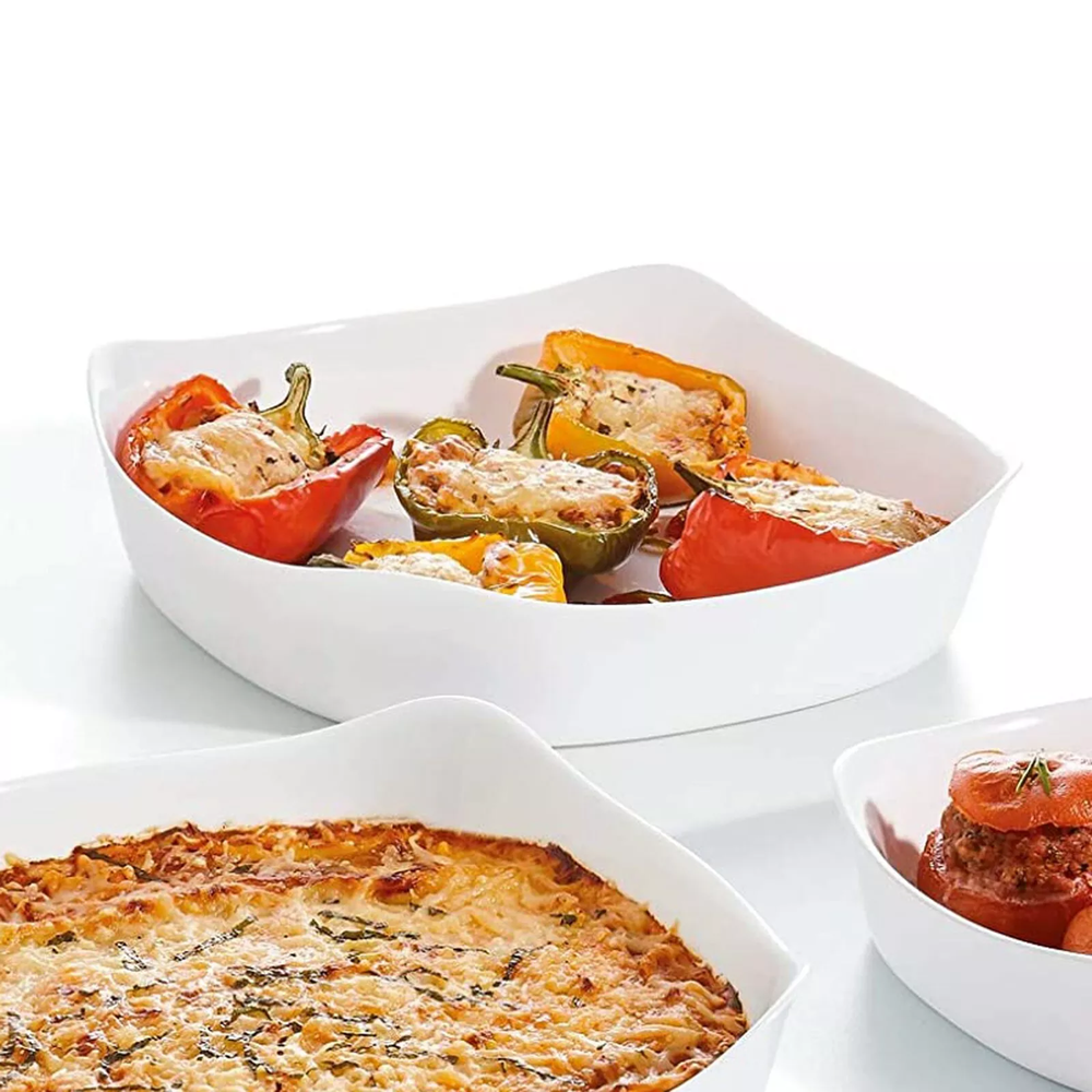 (Fuente cuadrada de vidrio de origen francés, aptas para lavavajilla, resisten hasta 250°c, ideales para usarlas de moldes, para recetas saladas y dulces, o también para una simple picada entre amigos, un producto excelente calidad).