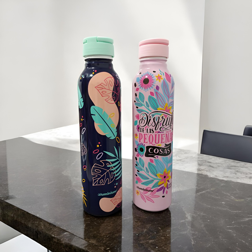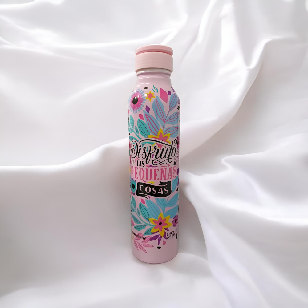 (Botella estampada de aluminio. Tapa a rosca. Capacidad 500ml. 100% reutilizable).