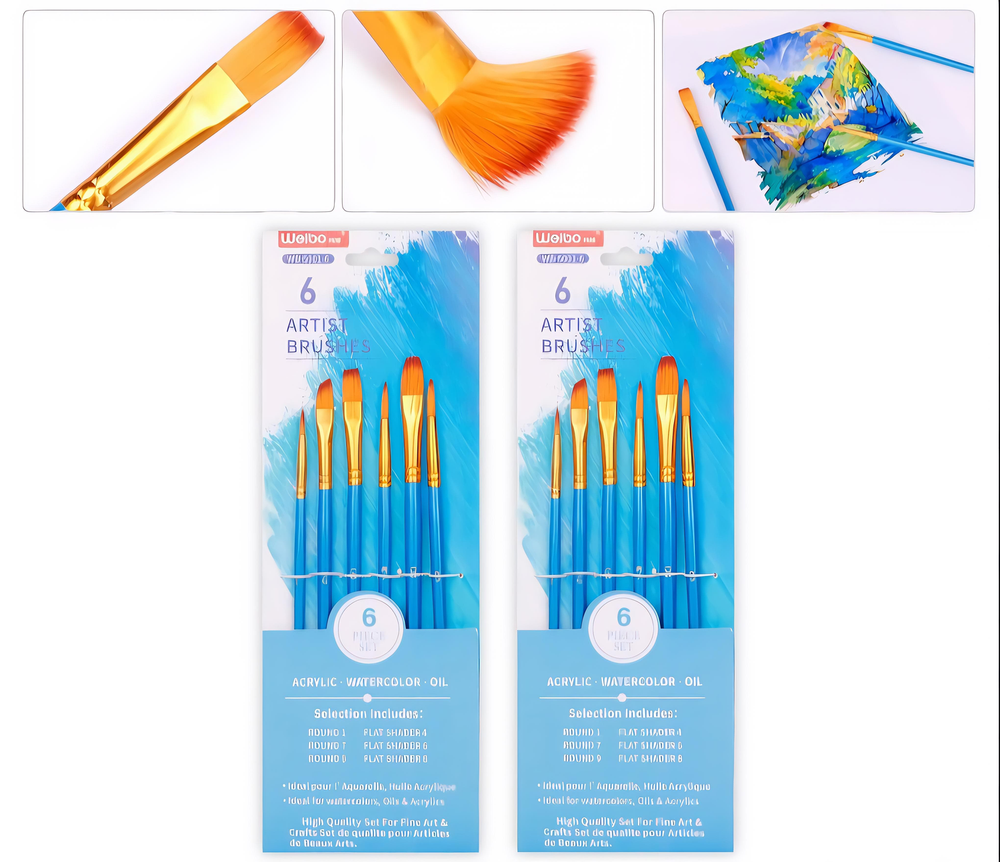 (Set x 6 Pinceles Artísticos de diferentes tamaños, punta plana ideal para hacer sombreado ).