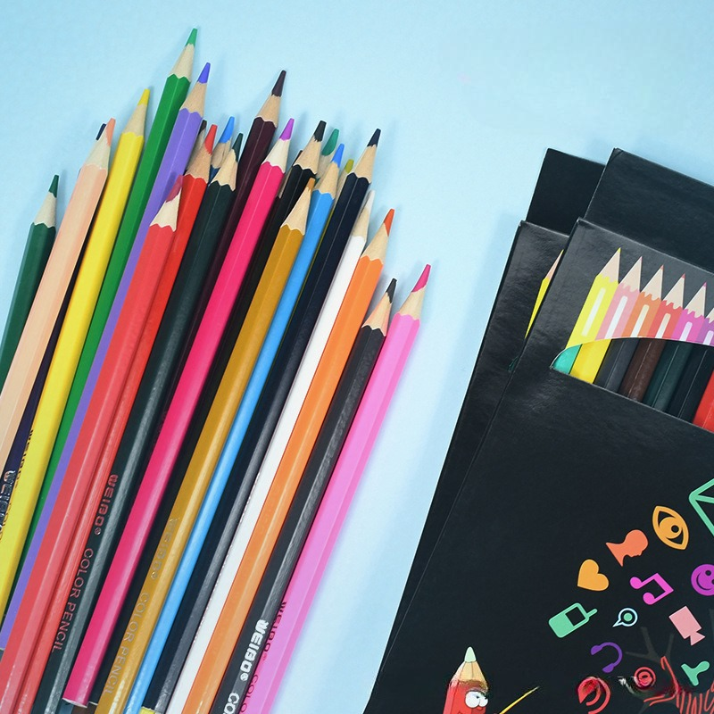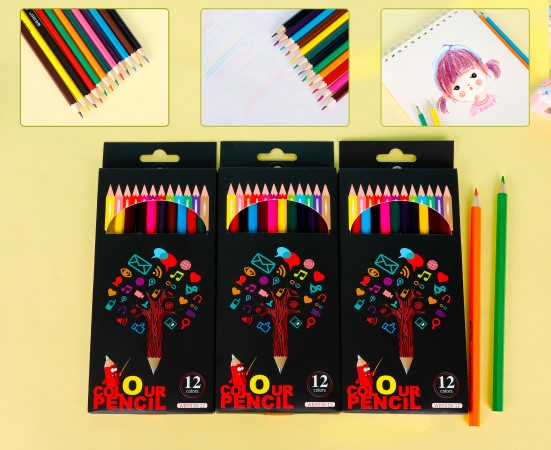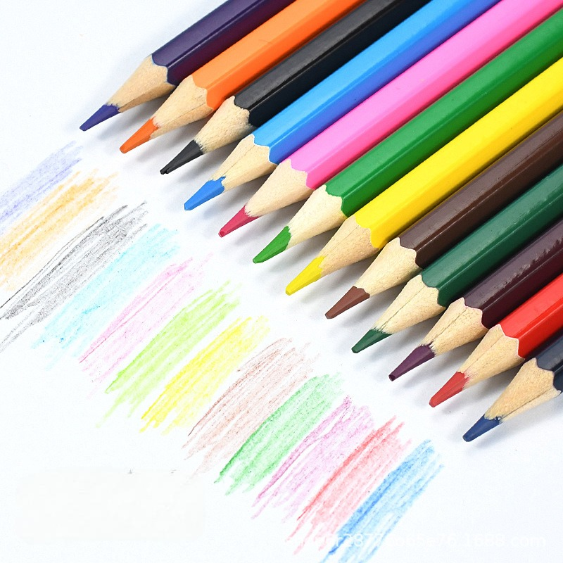 (Caja con 12 unidades de lápices colores surtidos, mina resistente y además su forma hexagonal permite un fácil agarre para escribir o pintar)