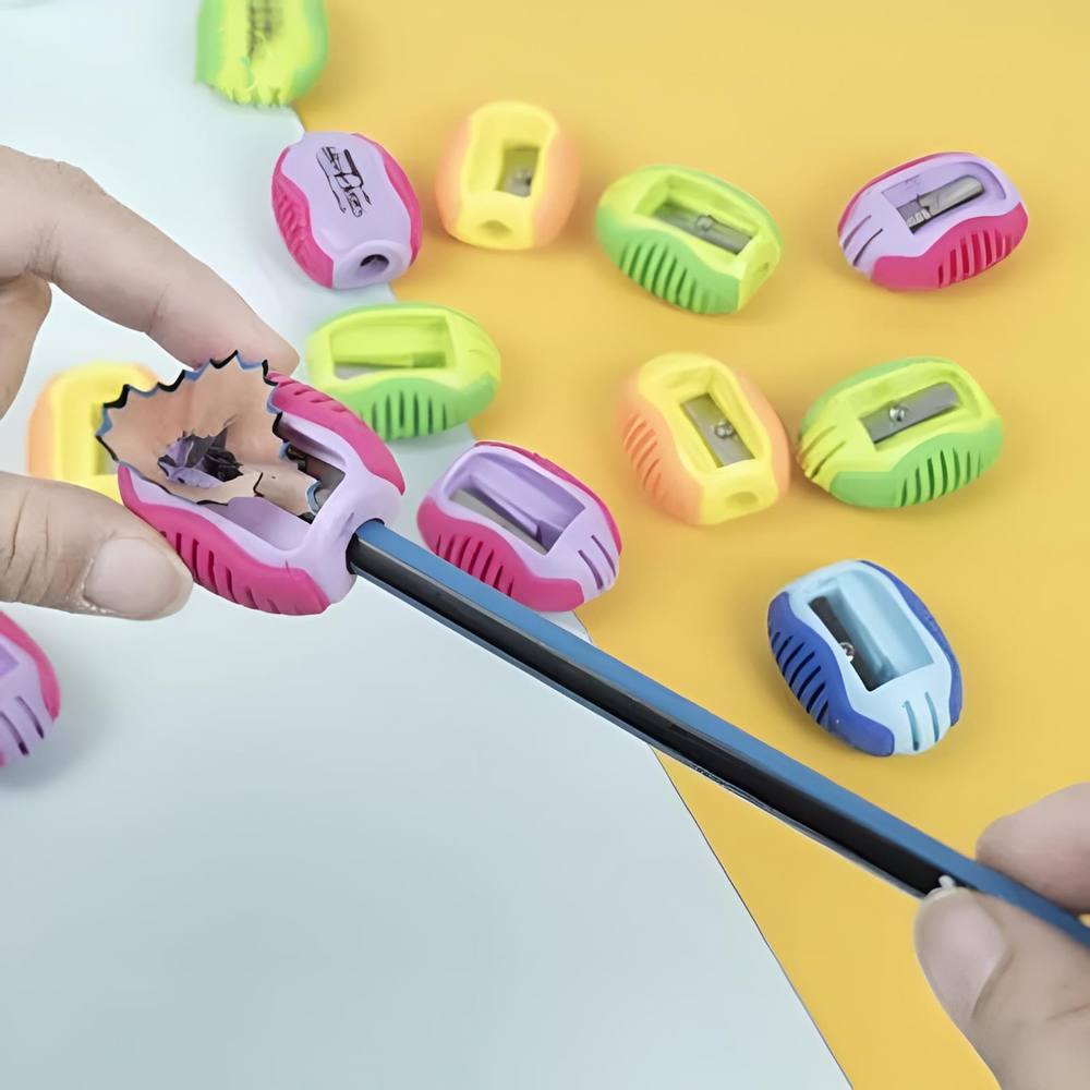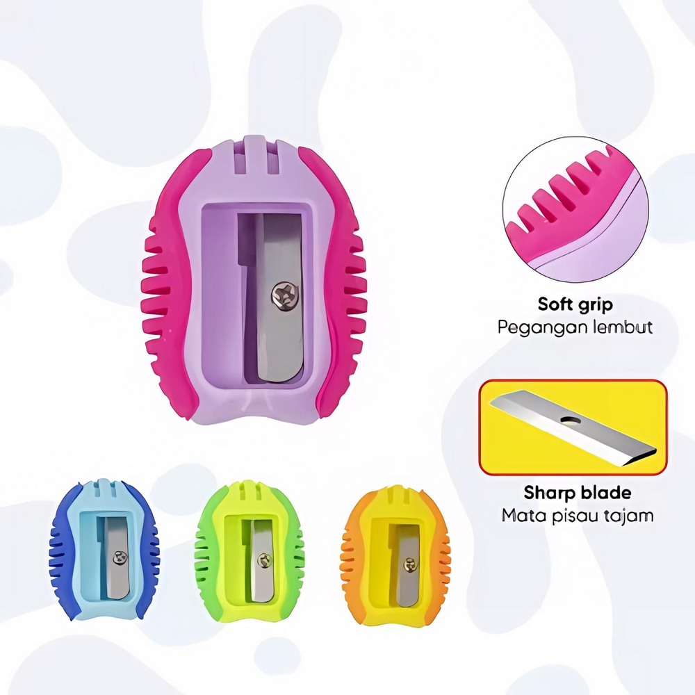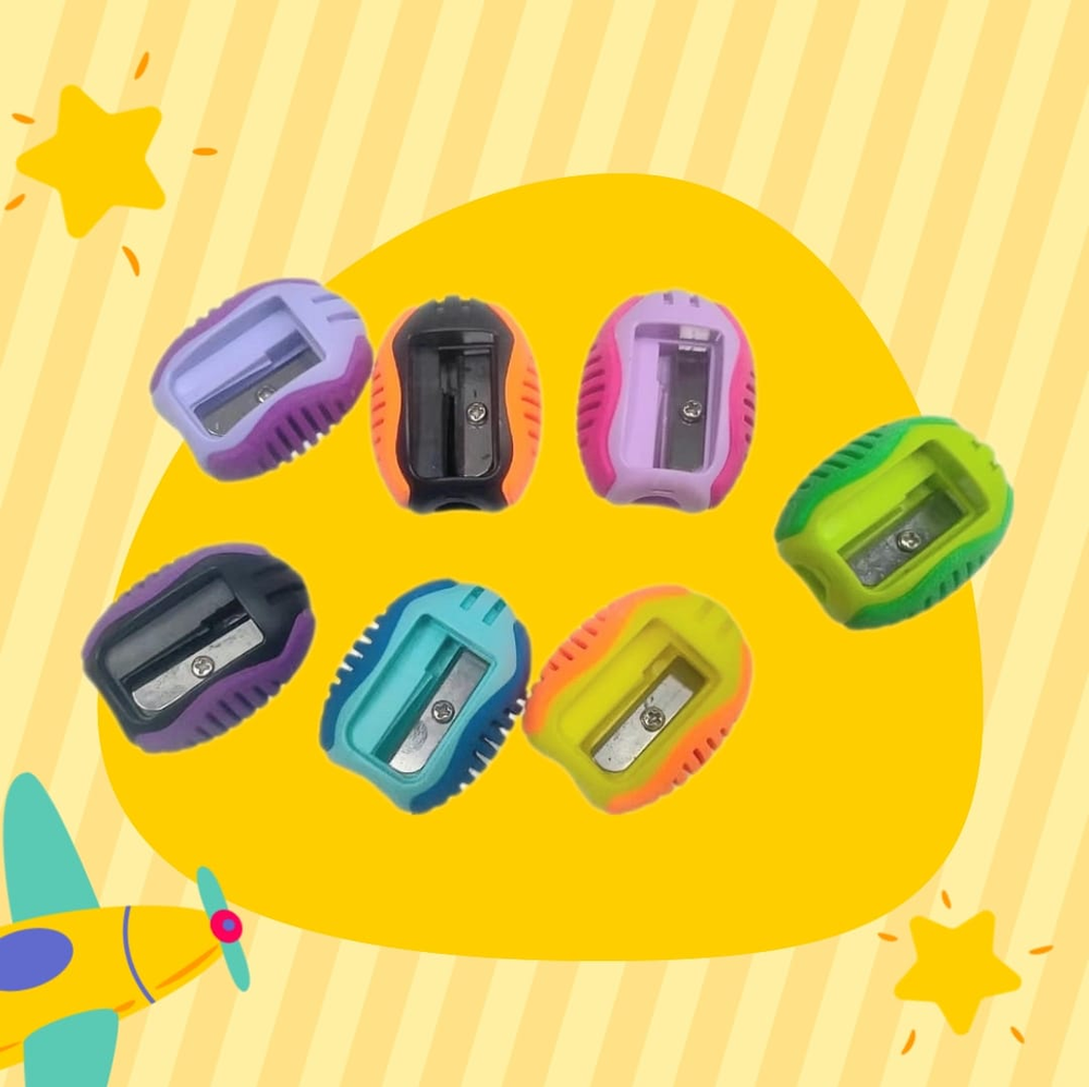 (Sacapuntas bicolor con agarre de silicona para mayor facilidad, cuchilla de acero super afilada. Ideal para la vuelta al cole).
