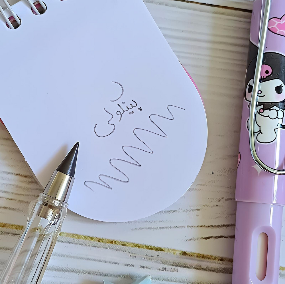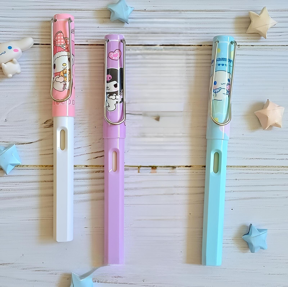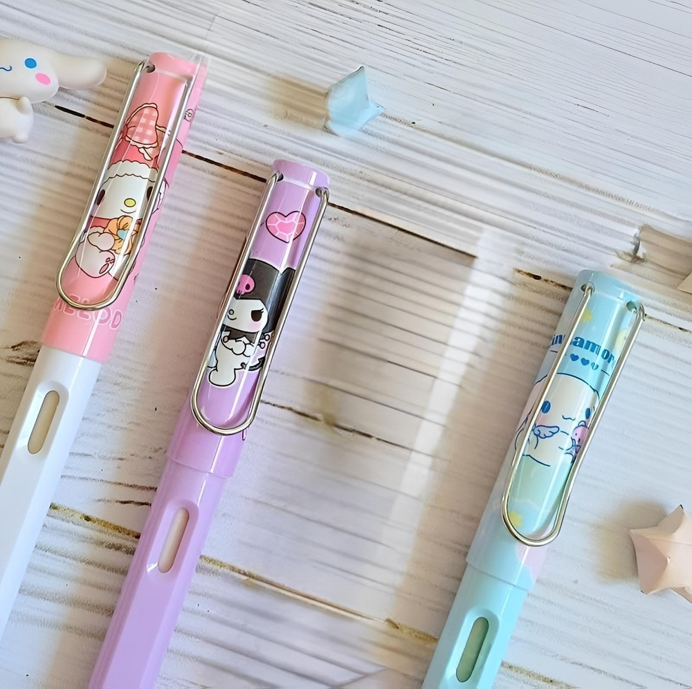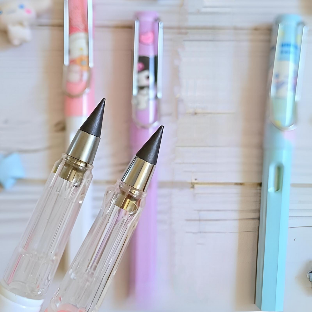 (Gracias a las moléculas metálicas que posee la punta del lápiz, al escribir sobre el papel deja un rastro similar a el de un lápiz. No genera residuos, no mancha y es resistente. Cuenta con diseño de personajes "Sanrio" y posee 3 modelos distintos).