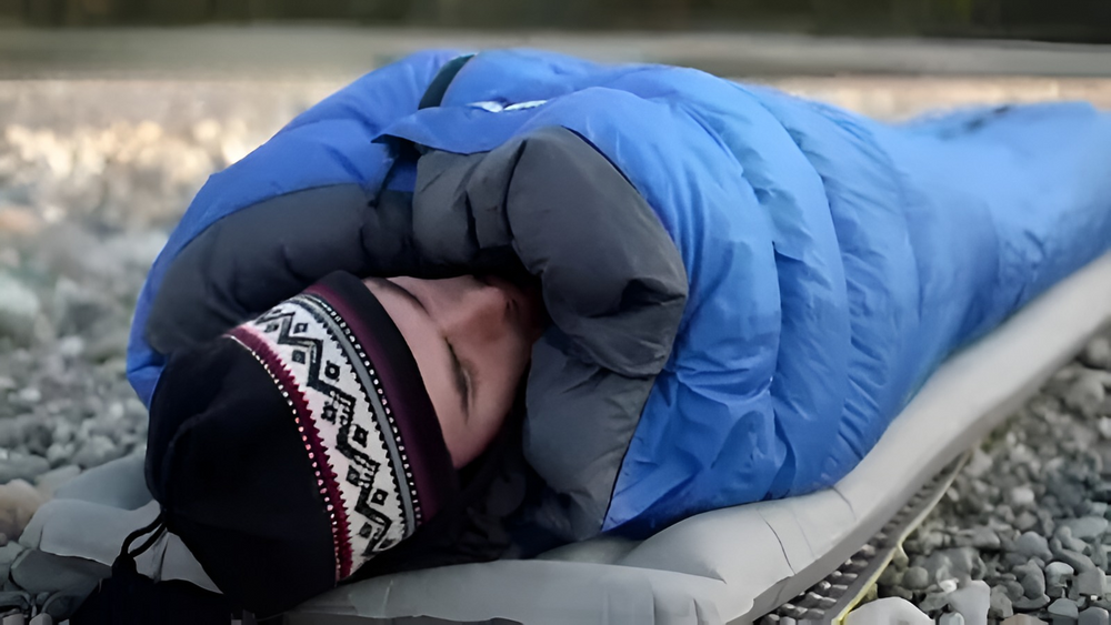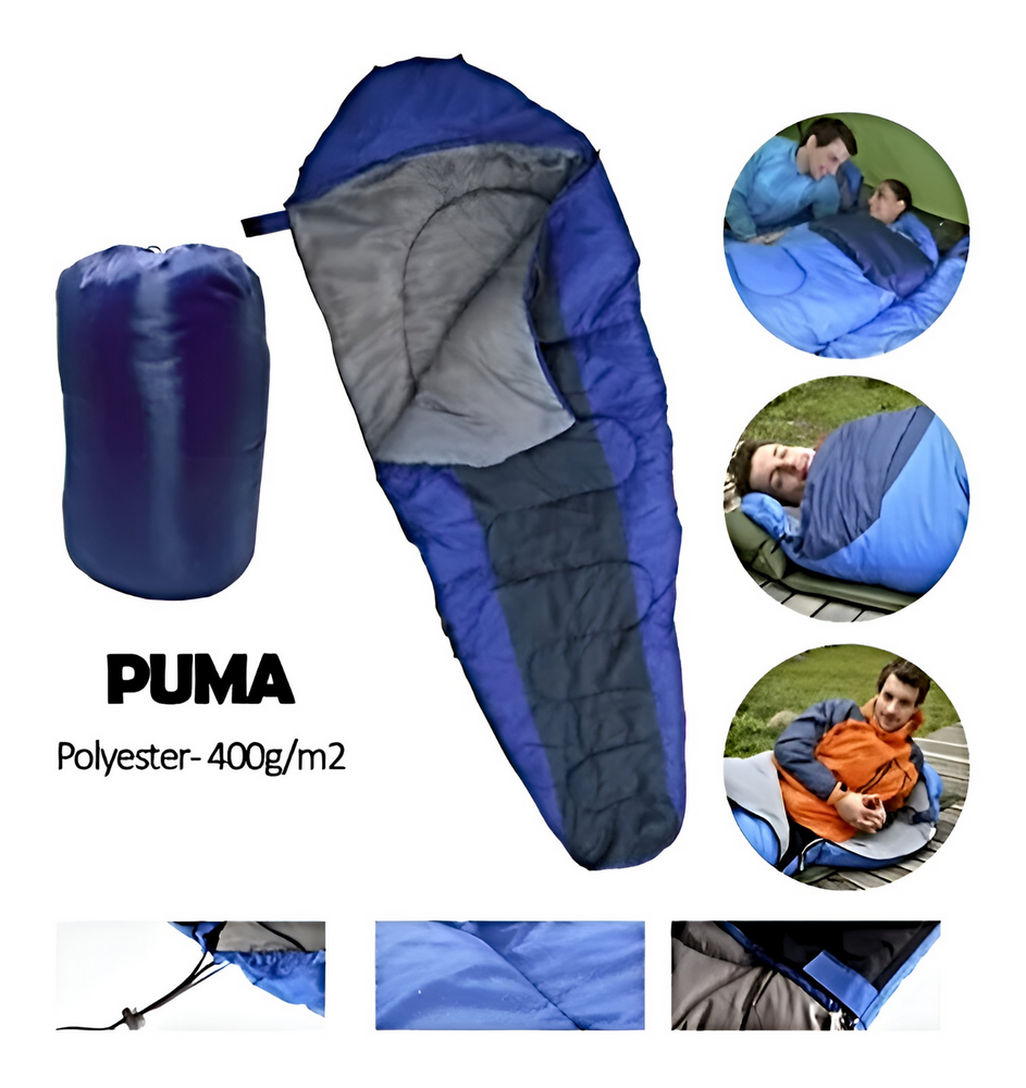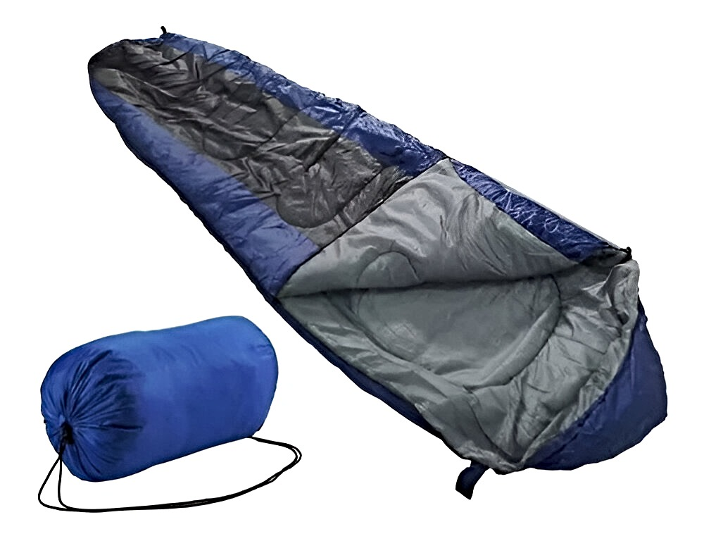 (Bolsa de dormir tipo momia para una persona, es resistente al agua e incluye una funda de cordón para guardarla. Disponible en 2 colores, ideal para camping, excursiones, etc.).