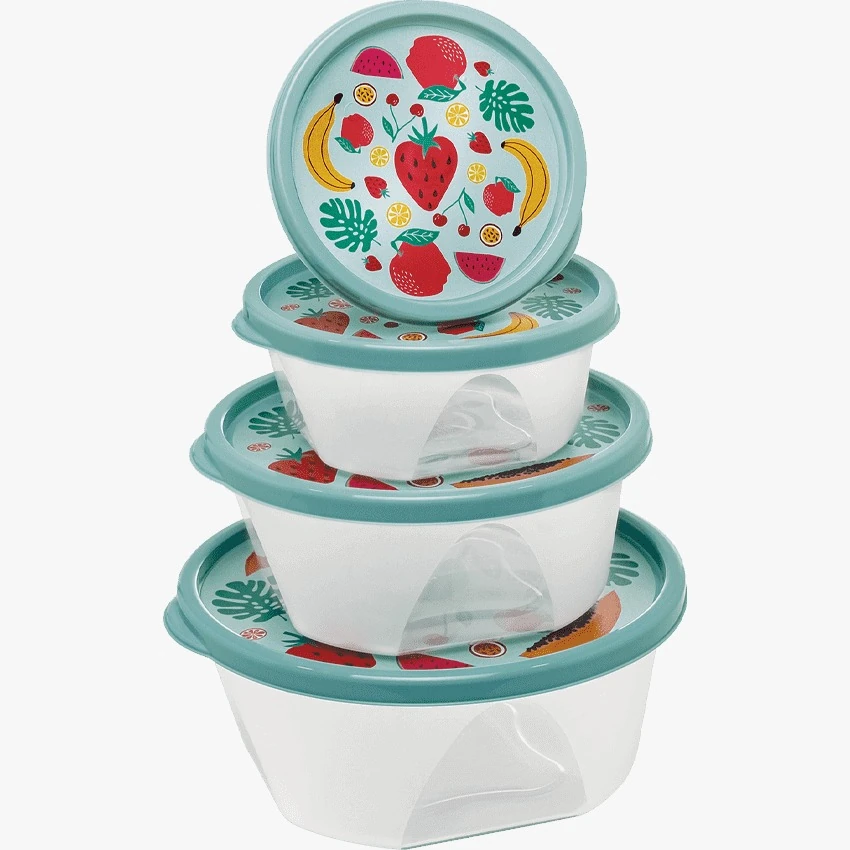 (Set de tuppers de excelente sellado y resistencia; decoraciones temáticas duraderas que hacen que su cocina sea más divertida, son Ideales para la organización en general y cuentan con sistema apilable).