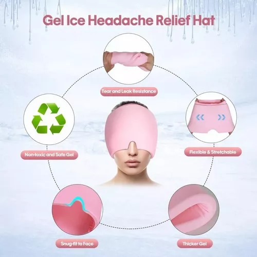 (Gorro de gel flexible y estirable , resistente a desgarros y fugas. Ideal para aliviar las migrañas, dolor de cabeza, estrés, etc.).