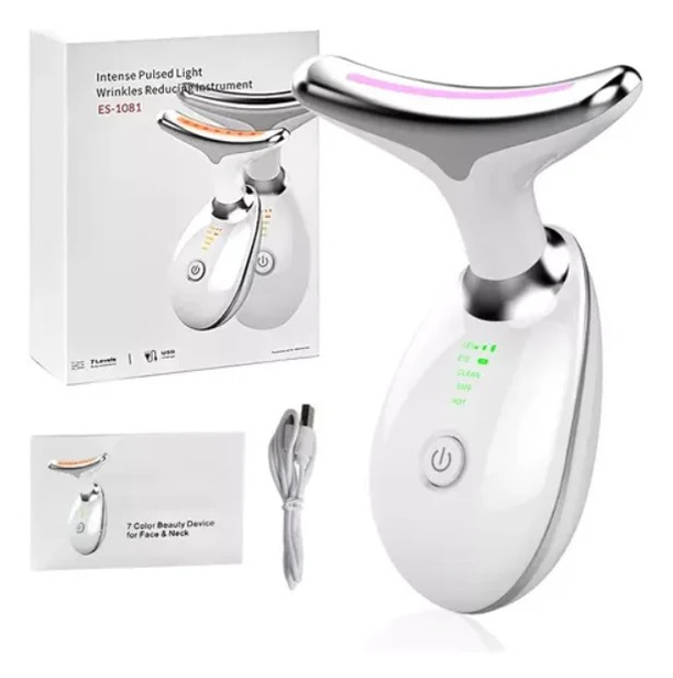 (Masajeador de Rostro recargable con tres modos de luz led. Ayuda a mejorar la piel y retrasar los signos del envejecimiento. Recargable con cable USB. Ideal para usar en papada, cuello, frente y mejillas. Recomendable usar con un locion o desmaquillante para obtener un mayor limpieza profunda en los poros y hacer que la piel se vuelva mas translucida, ya que este producto adopta tecnología micocorrientes. Cuenta con 3 tipos de luz: