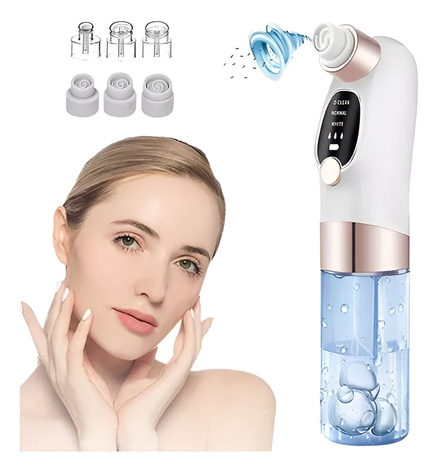 (Fabricado con materiales de alta calidad y con un diseño compacto y duradero. Tiene un sistema de doble recipiente que incluye un recipiente de agua fresca y un recipiente de aguas residuales para asegurar que al limpiar los poros, el agua limpia no se recicla para evitar infecciones de la piel. cuenta con 3 picos para succionar filamento e sebaceas o puntos negros y 3 picos de diferentes tamaños de silicona para limpieza con agua en diferentes áreas faciales. La punta pequeña es adecuada para limpiar zonas pequeñas como las comisuras de la nariz, la punta mediana es adecuada para limpiar alrededor de los ojos y la nariz, y la punta grande está diseñada para la frente y la cara).