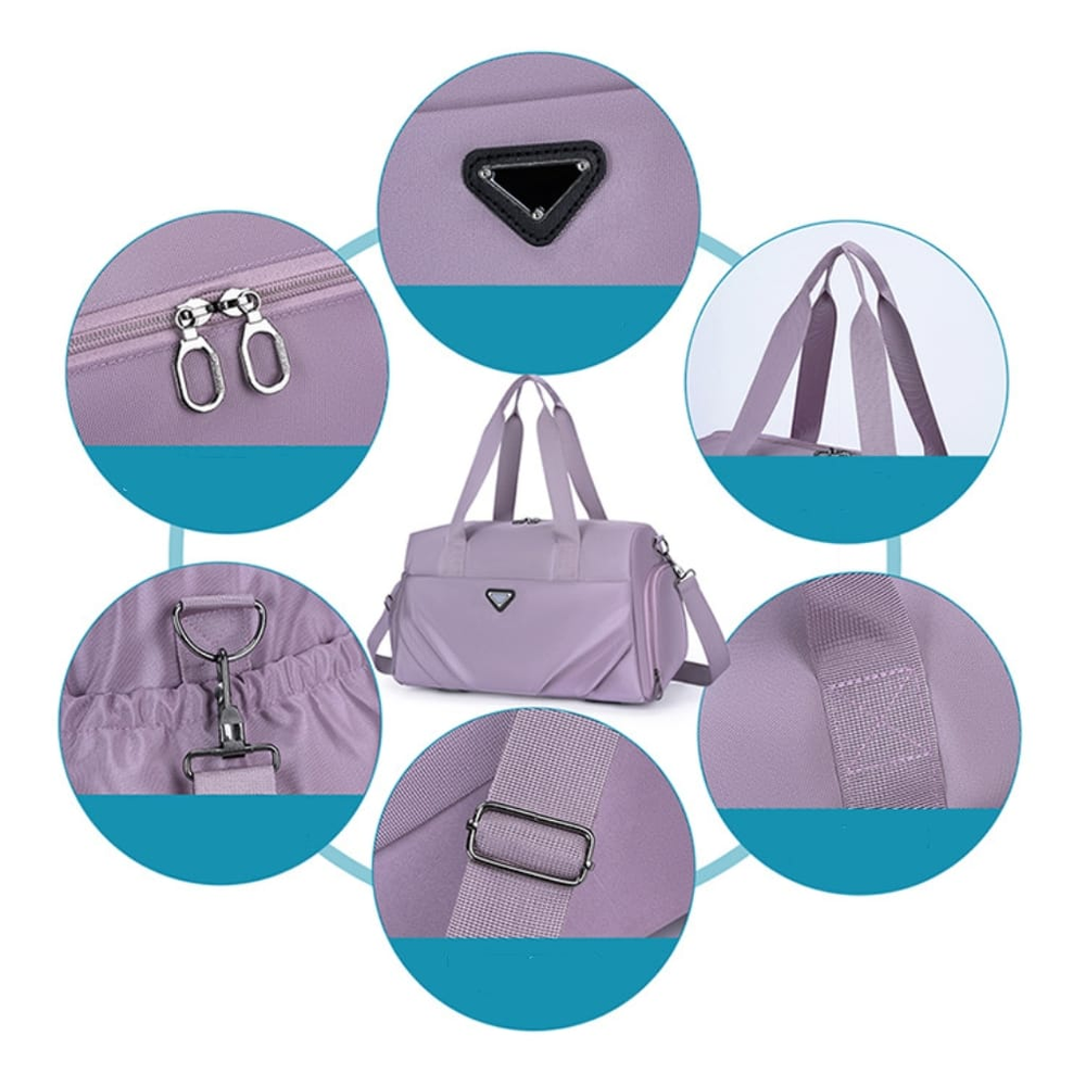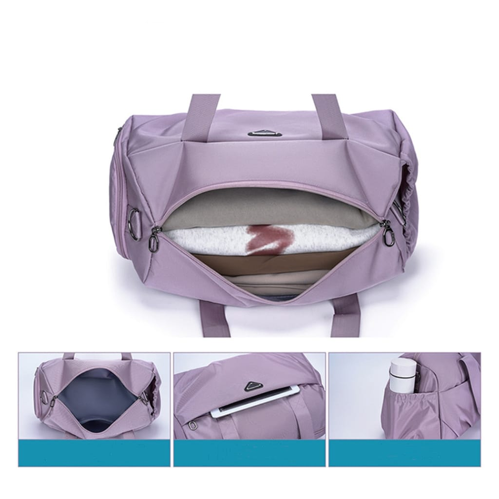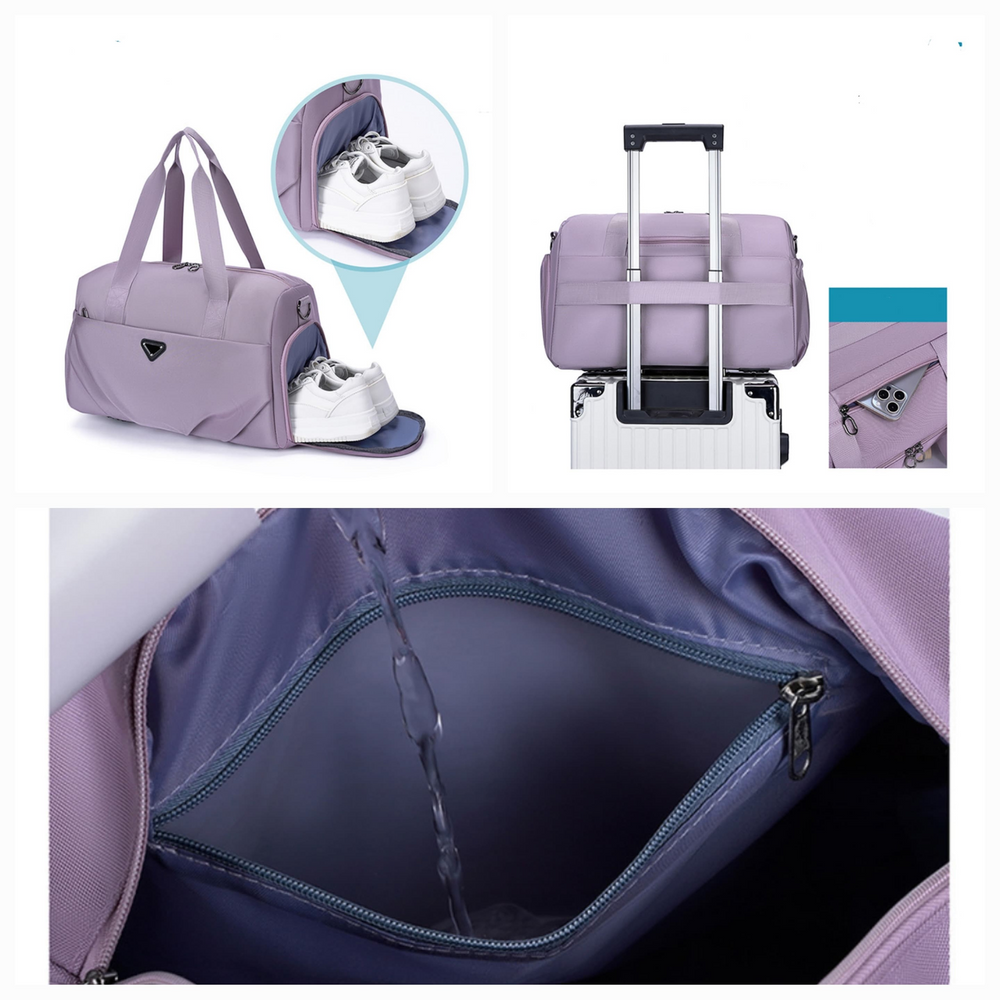 (Bolso de Viaje de gran capacidad, diseñado para apoyar arriba de la valija. en su exterior cuenta con un bolsillo lateral, un compartimento frontal, un compartimento para zapatos, un bolsillo para guardar tus pasaportes y dentro del compartimento principal cuenta además con un bolsillo para humedos).