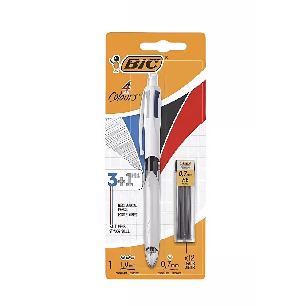 (Birome Retráctil 3+1HB marca "BIC", cuenta con 3 canetas bolígrafos y 1 lapisera portaminas, trae también minas gafites. Ideales para uso escolar, de oficina o personal).