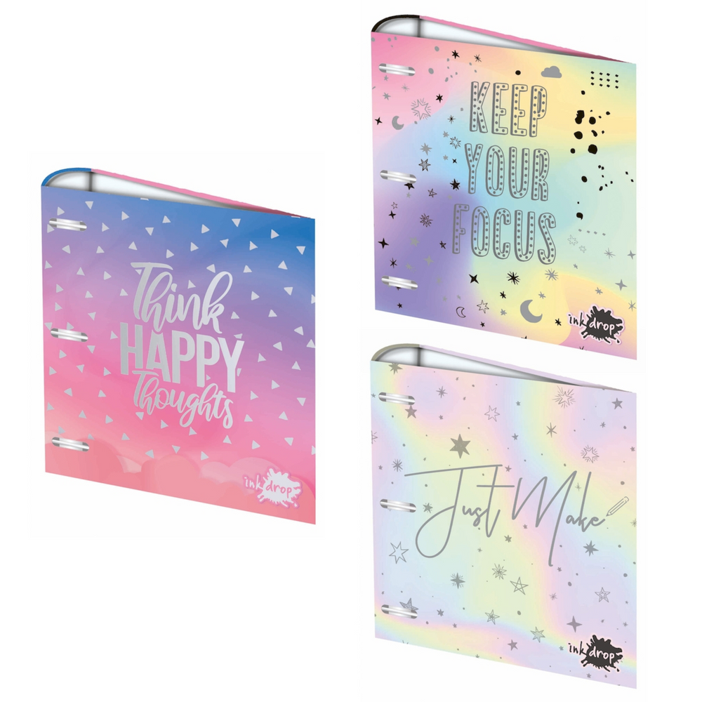 (Carpetas tapaduras con hermosos estampas de Sky marca "Inkdrop".En su interior cuenta con un formulario para completar tus datos personales, horarios y contactos. Ideal para vuelta al cole).