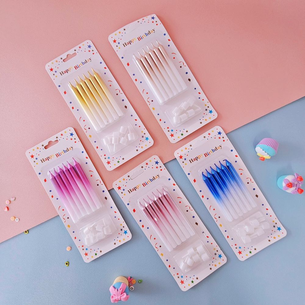 (Blister de seis velas de distintos colores vibrantes y hermosos).