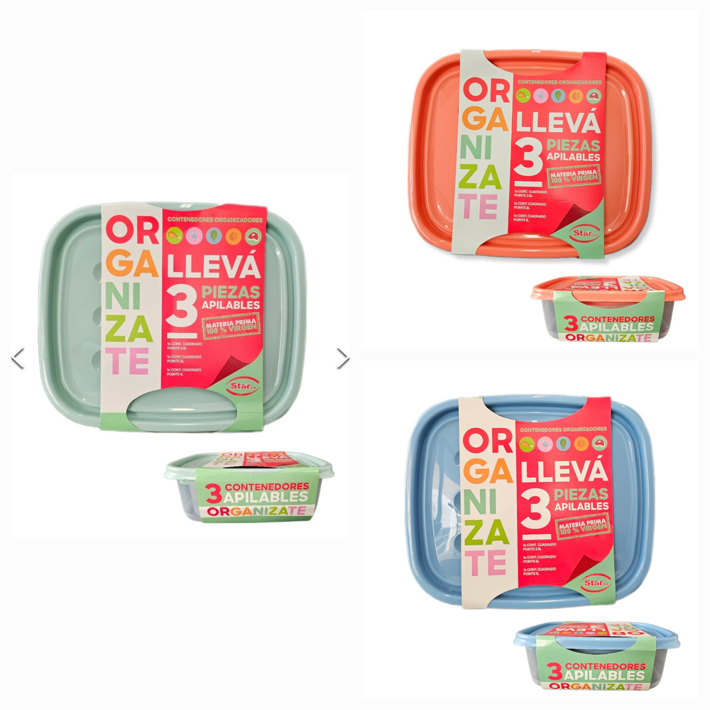 ( tupper de excelente sellado y resistencia; decoraciones temáticas duraderas que hacen que su cocina sea más divertida, son Ideales para la organización en general y cuentan con sistema apilable. Disponible en 3 colores).