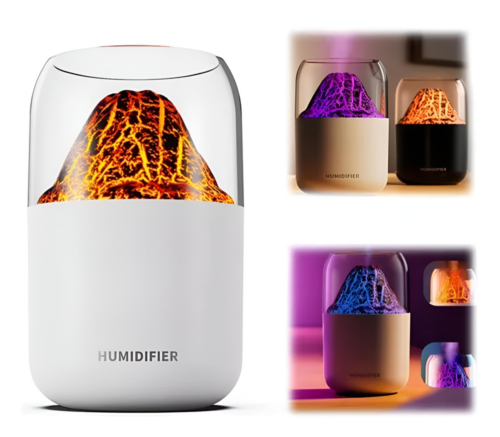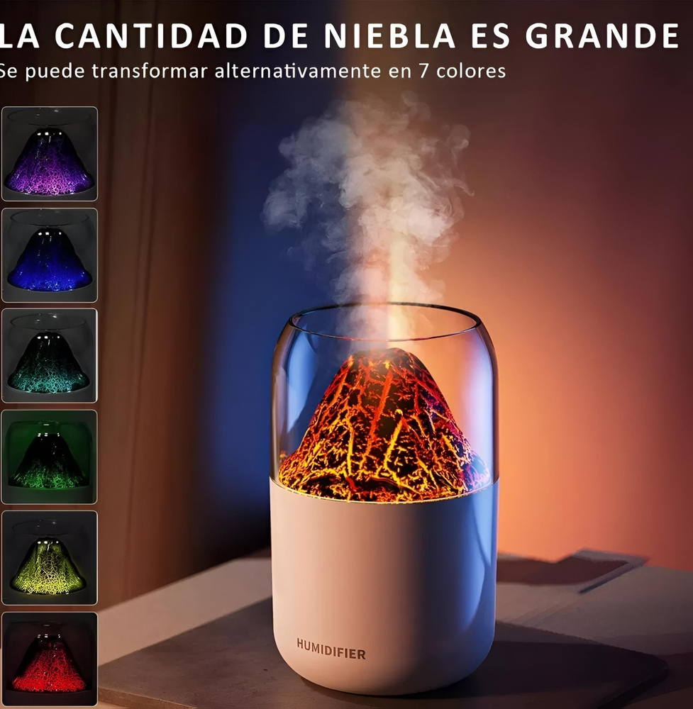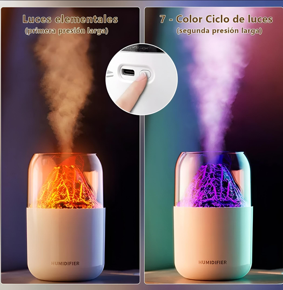 (Humidificador y Aromantizador con diseño de volcan. Base antideslizante, luces led cambia automatica, es recargable vía USB (incluido), posee botón de encendido/apagado. Ideal para aromatizar tu hogar. Incluye 1 filtro de regalo).
