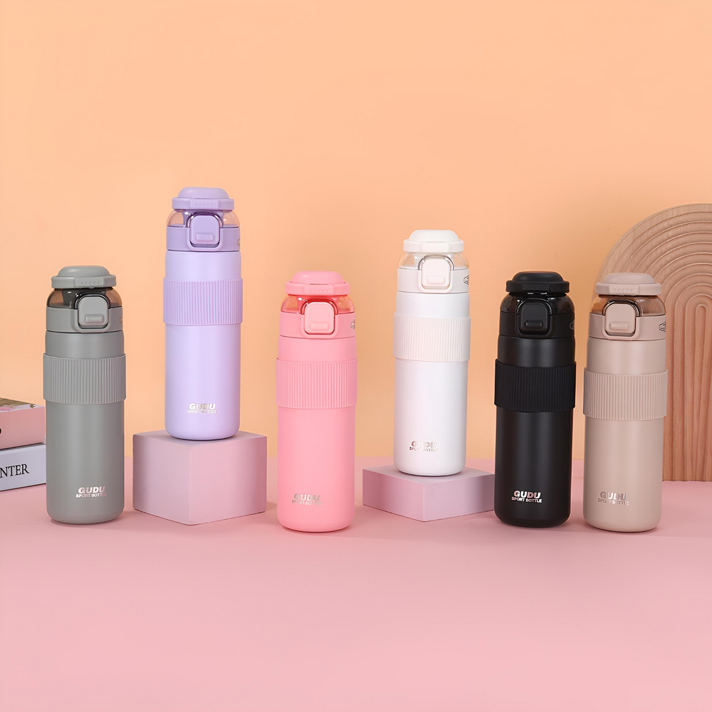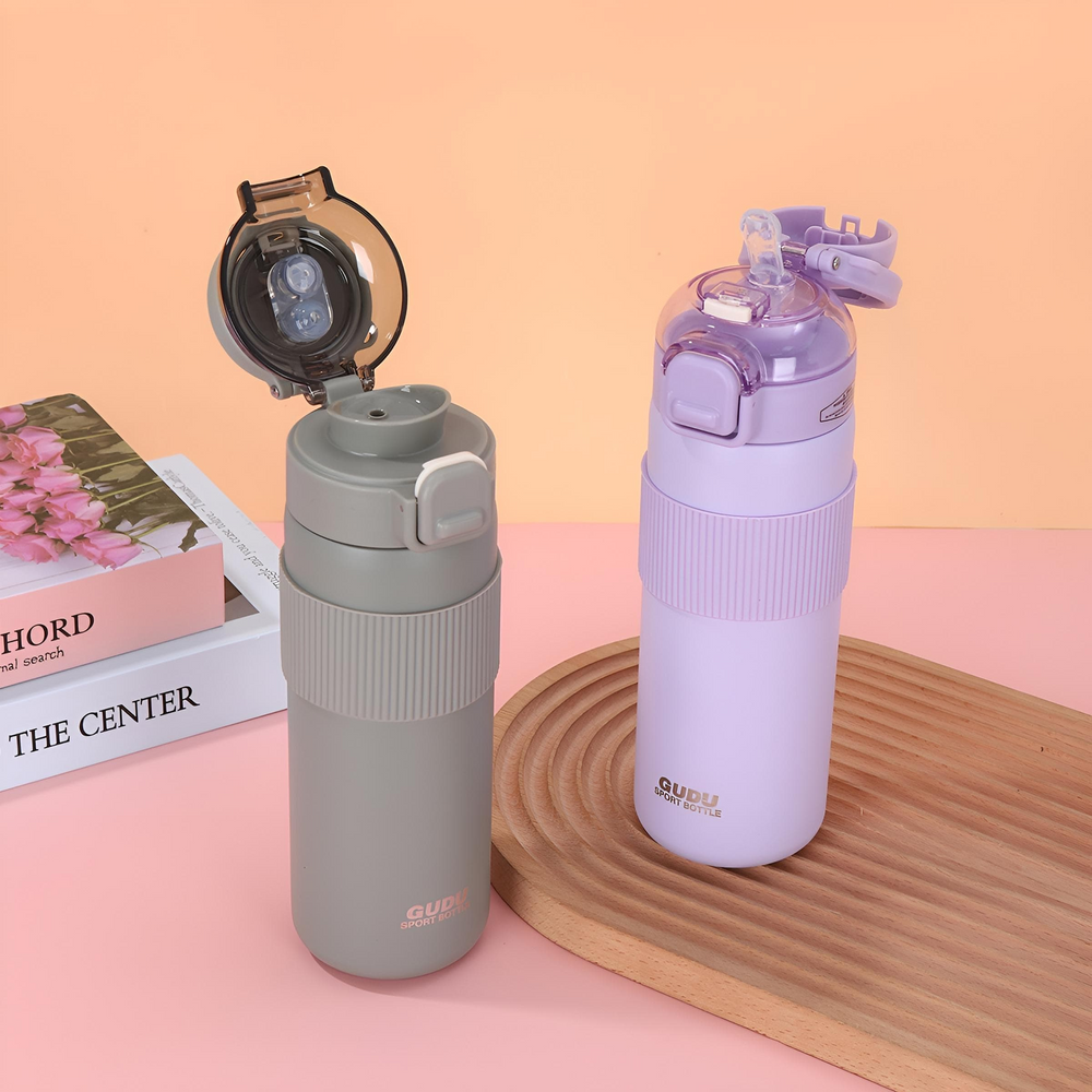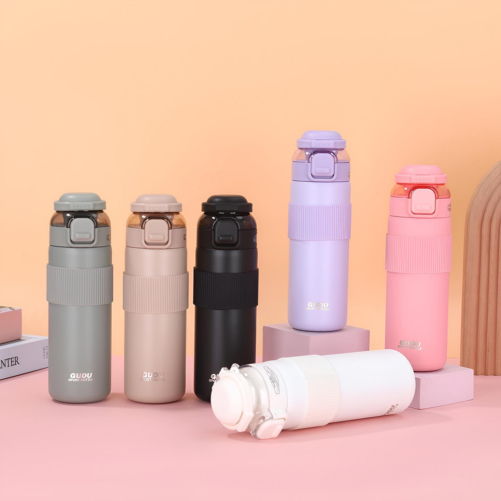 (Botella Térmica Doble Pico uno de silicona y otro tipo vertedor, capacidad 700ML de acero inoxidable en diferentes colores, cuenta con tapa a rosca y manija para mayor facilidad de transporte. Ideal para regalar).