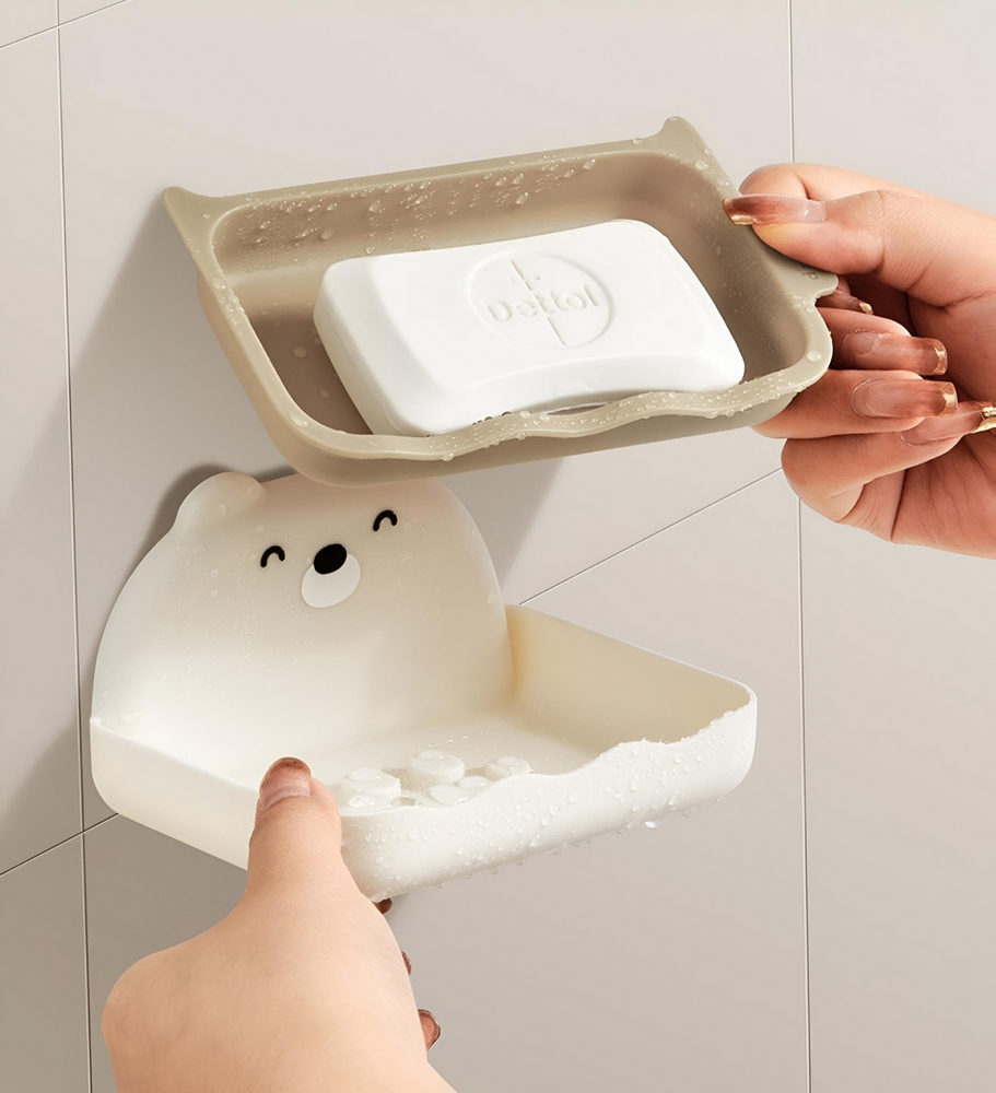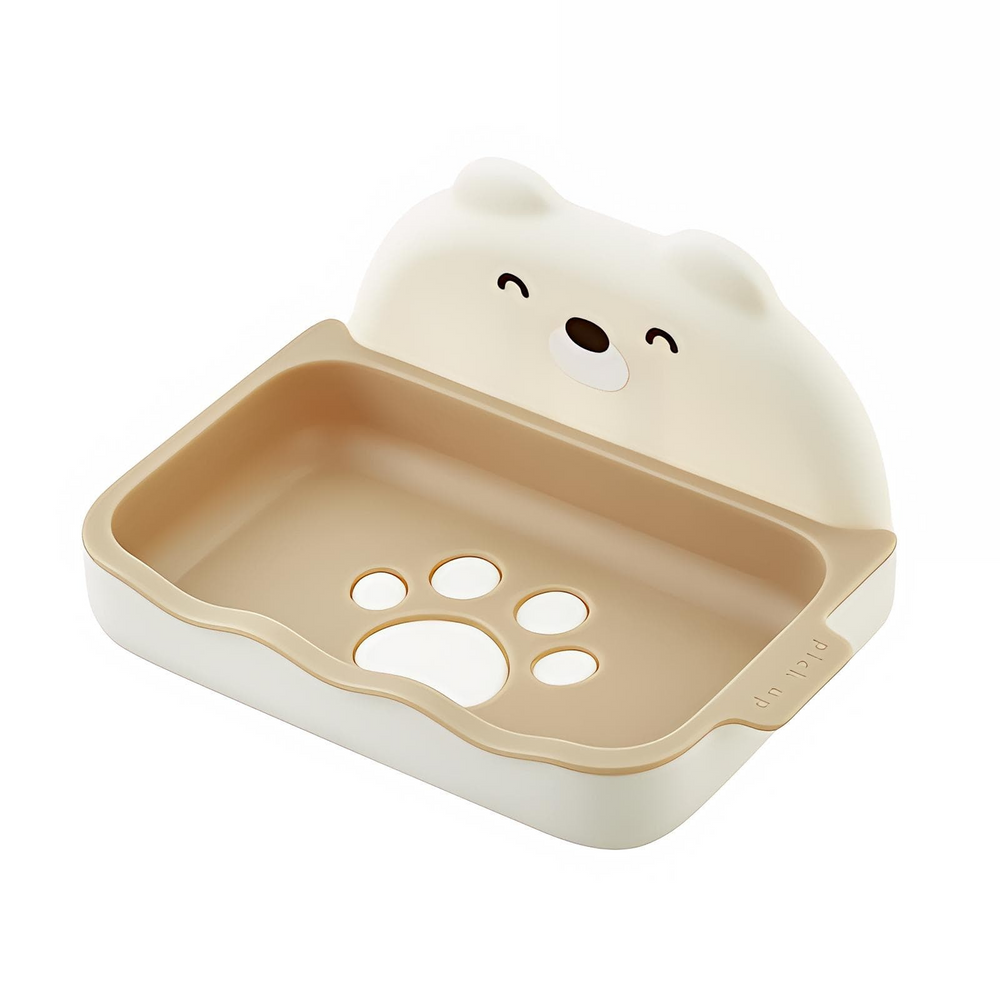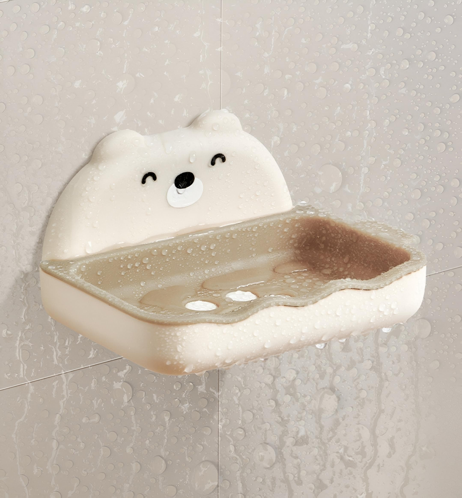 (Jabonera con diseño de oso blanco. Cuenta con una base removible y tiene un adhesivo. Ideal para la ducha).
