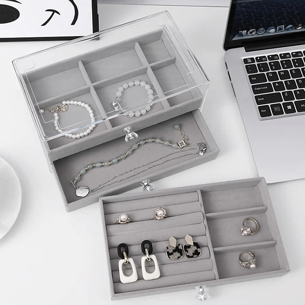 (Si no sabe cómo guardar sus joyas en su tocador, ahora puede elegir nuestro organizador de joyas para resolver sus molestias y dejar de preocuparse por no encontrar sus joyas. Es muy delicado y cuenta con cajoncitos para que sus accesorios parezcan de una princesa).